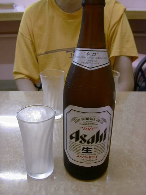 生ビール(夏季限定)が今日はないということだったので、瓶ビールにしました。2本頼んだのだけど、ぬるくなるからということで気を使って1本ずつ持ってきてくれました。ただ、僕はビールはグビグビ飲みたいので一口サイズのコップはちょっと残念。(め)