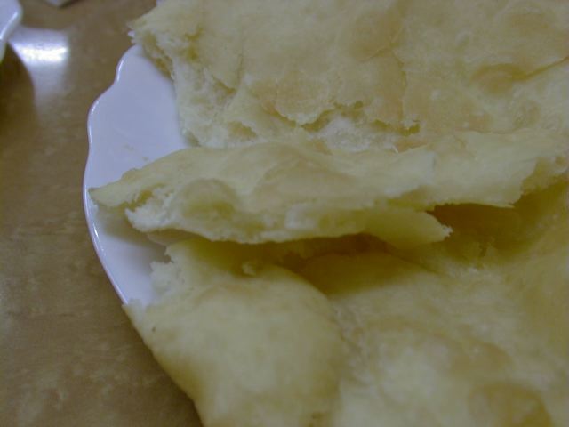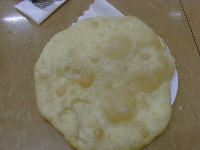 焼いたものと揚げたものと両方出来ると言われたので、揚げたほうにしてもらいました。味はデリーで食べたバトゥラに近いですね。甘さはほんのりで、外は油で揚げたサクサク感があって、なかはふわっと小麦粉のいい香りがして、これは美味しいです。気に入りました。(め)