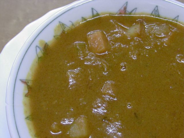 本当はエビカレーを注文したかったんだけど、売り切れということで、ベジタブルカレー。売り切れるということは、それだけ新鮮な食材を使うようにしているんじゃないかということで納得。賽の目に切ったニンジン、ジャガイモ、ダイコンがたっぷり入ってます。野菜はほどよく煮えていて、特にダイコンがうまかった。(め)