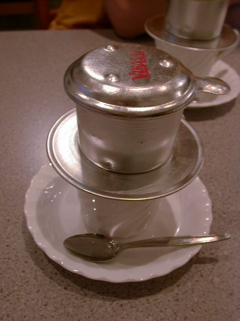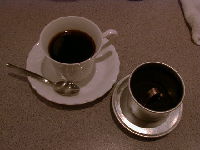 ベトナムコーヒーだけ飲みに近くのソンフォンに寄りました。コーヒーだけの客なのに熱いお手ふきを手渡してくれたり、気持ち良く迎えてくれました。ベトナムでコーヒー豆を作っているのかどうか疑問に思ったので聞いてみると、ベトナムコーヒーに使う豆はベトナムで作っているコーヒー豆でないと独特の香りが出ないとのことで、このお店でも当然ベトナムから豆を仕入れているとのことでした。(め)