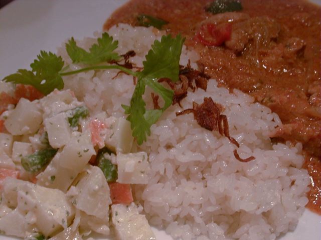 どれかひとつだけ頼むなら、マレー風カレーライスかチキンライスか悩むなあ。(い)