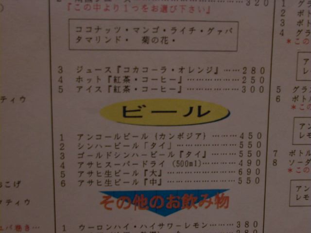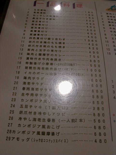 アンコールワットのメニュー