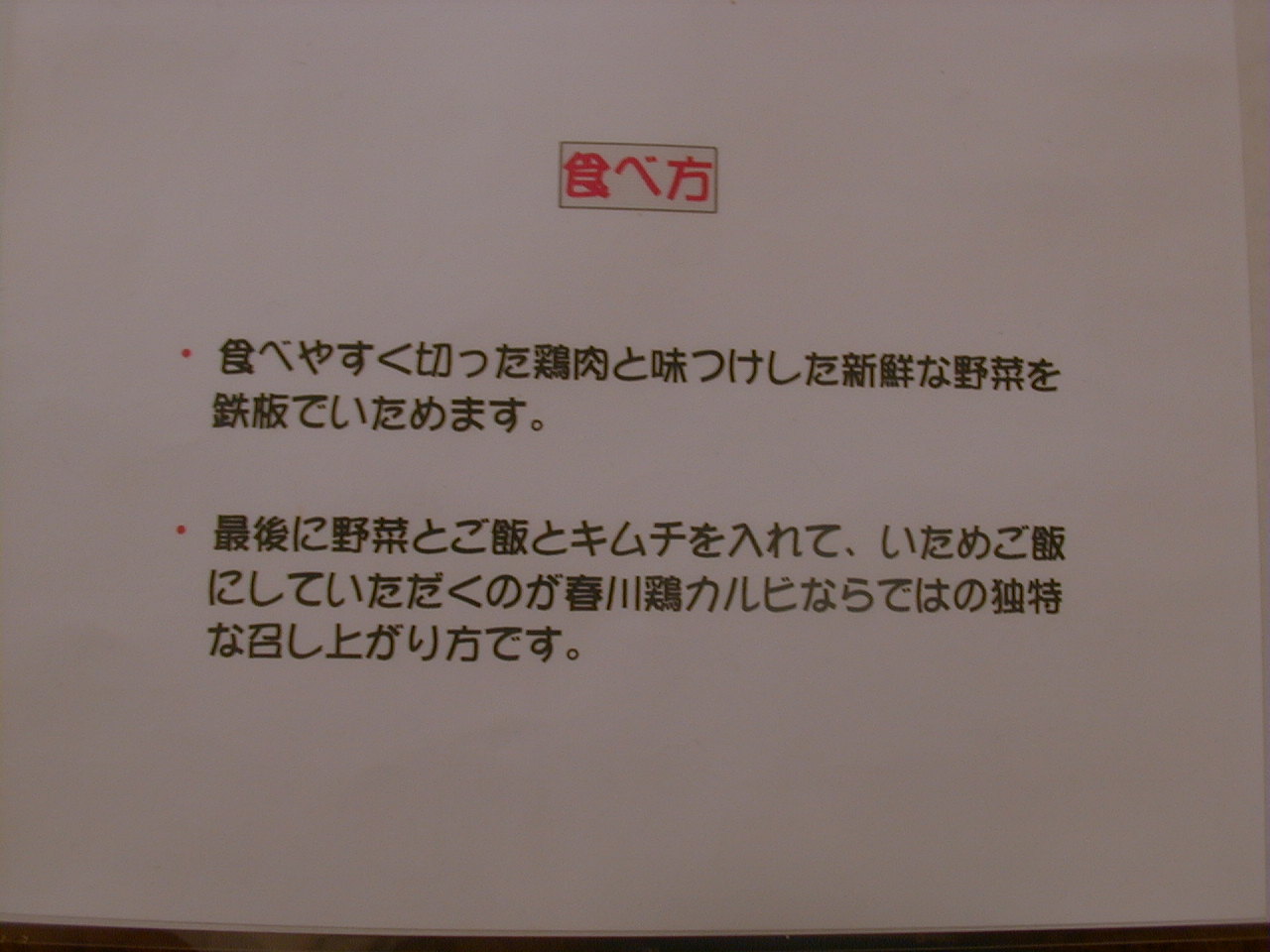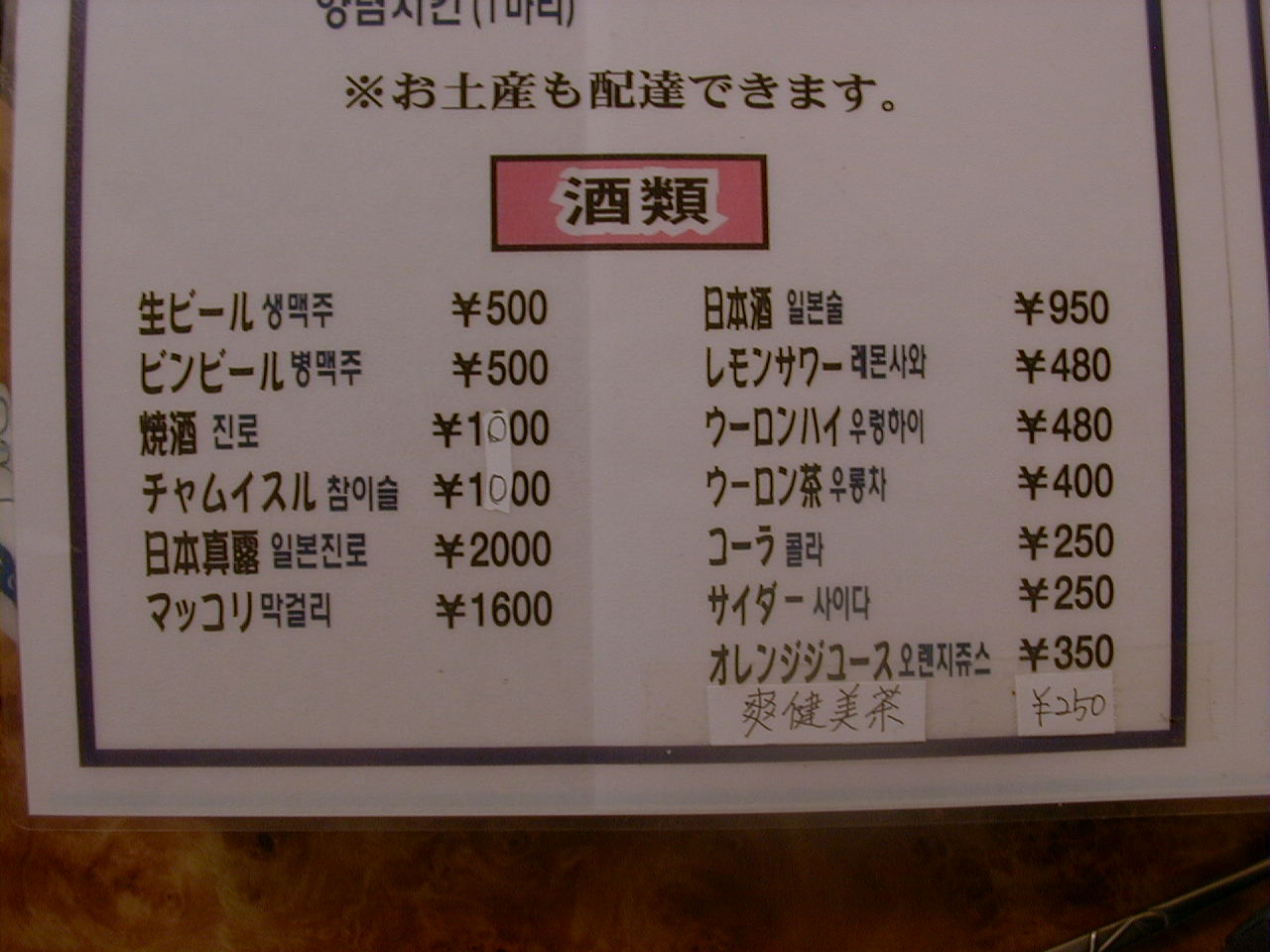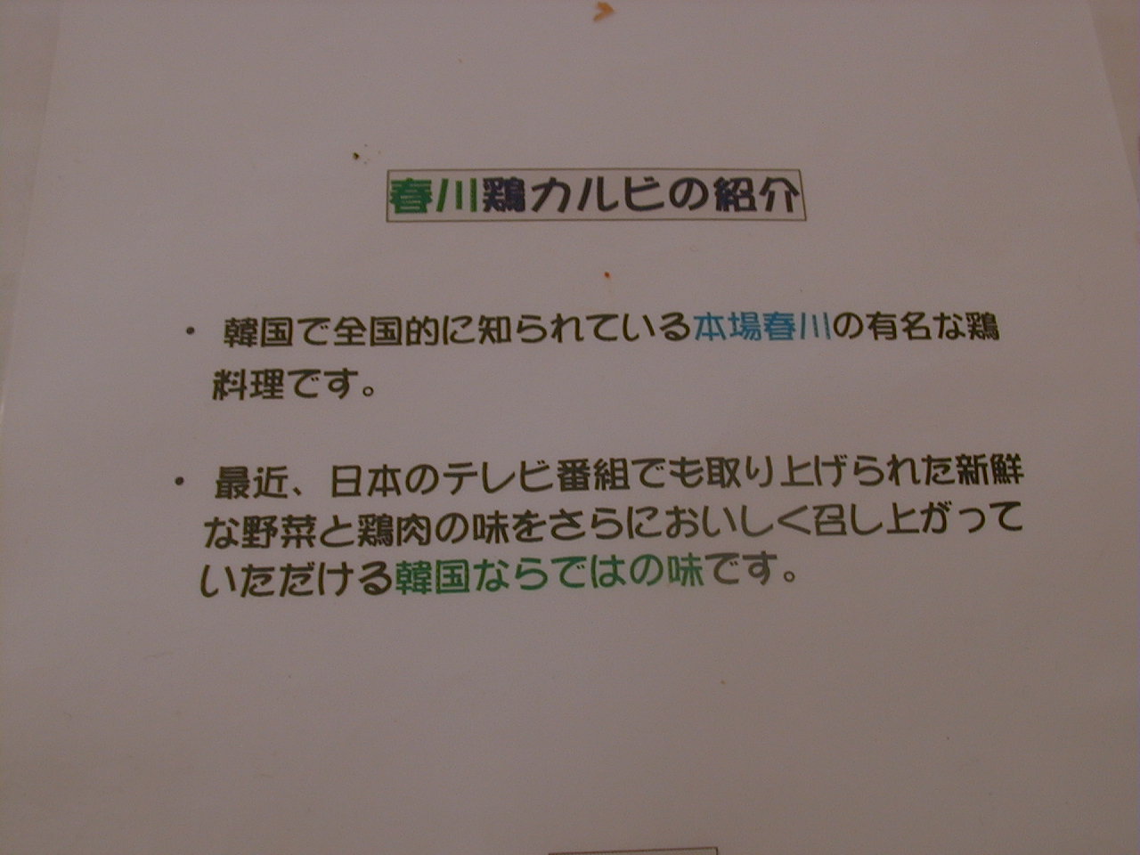 2000/9/23: 玄の家(春川鶏 カルビ & フライドチキン)のメニュー