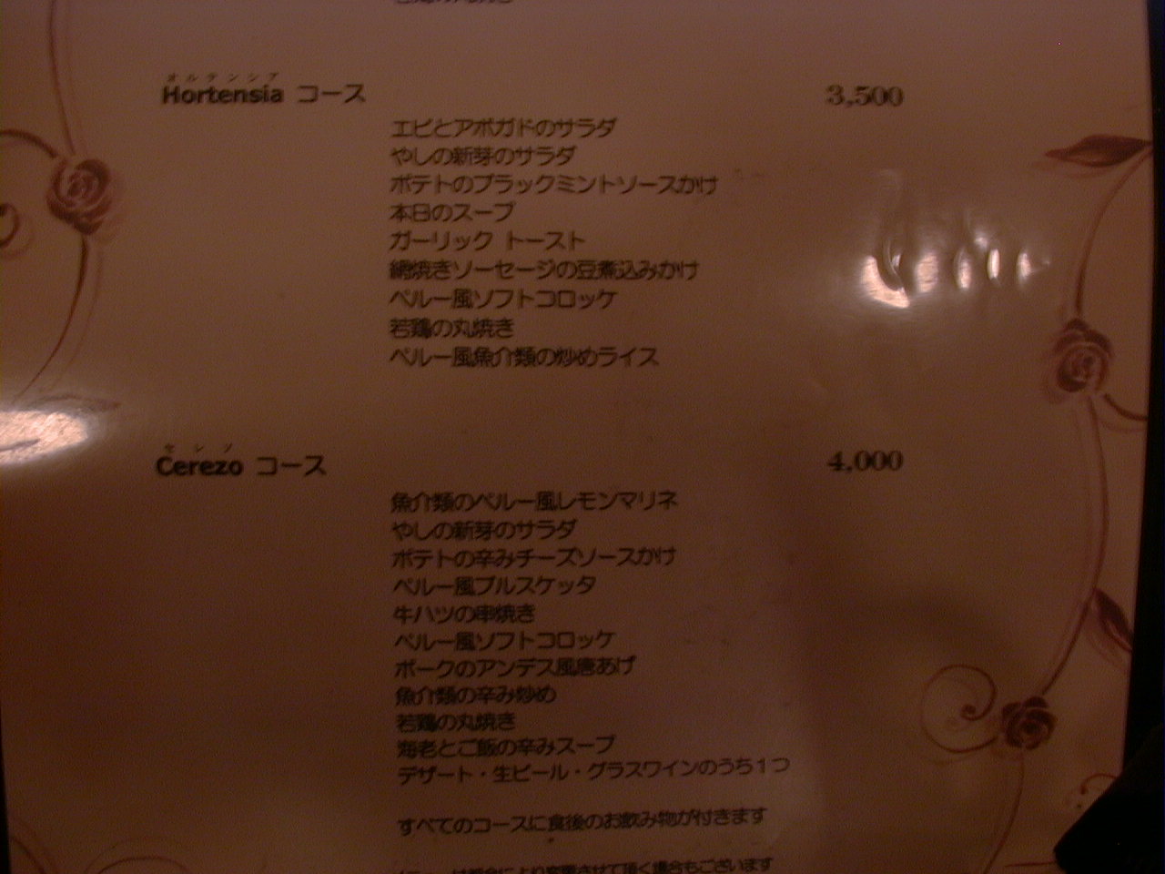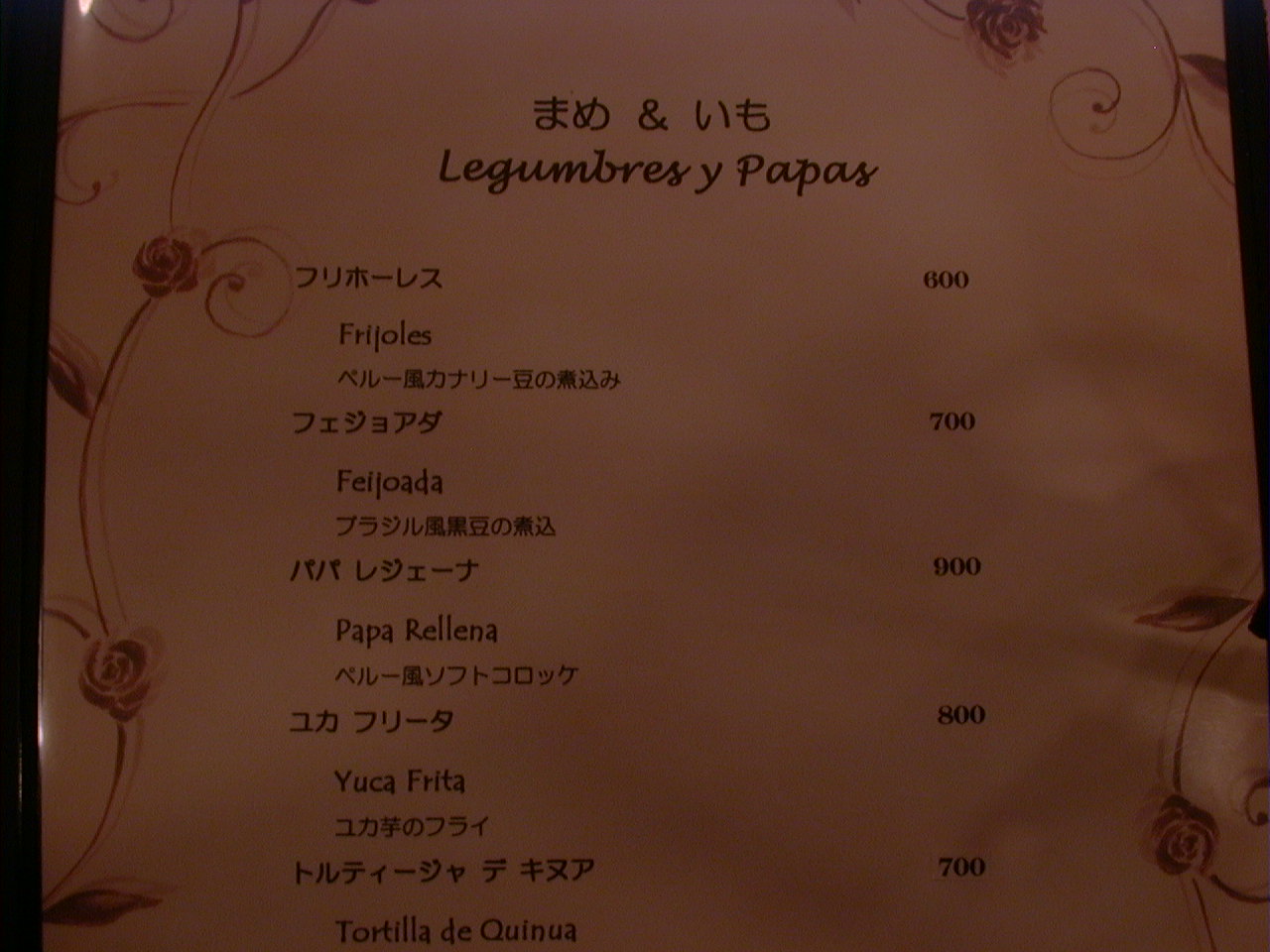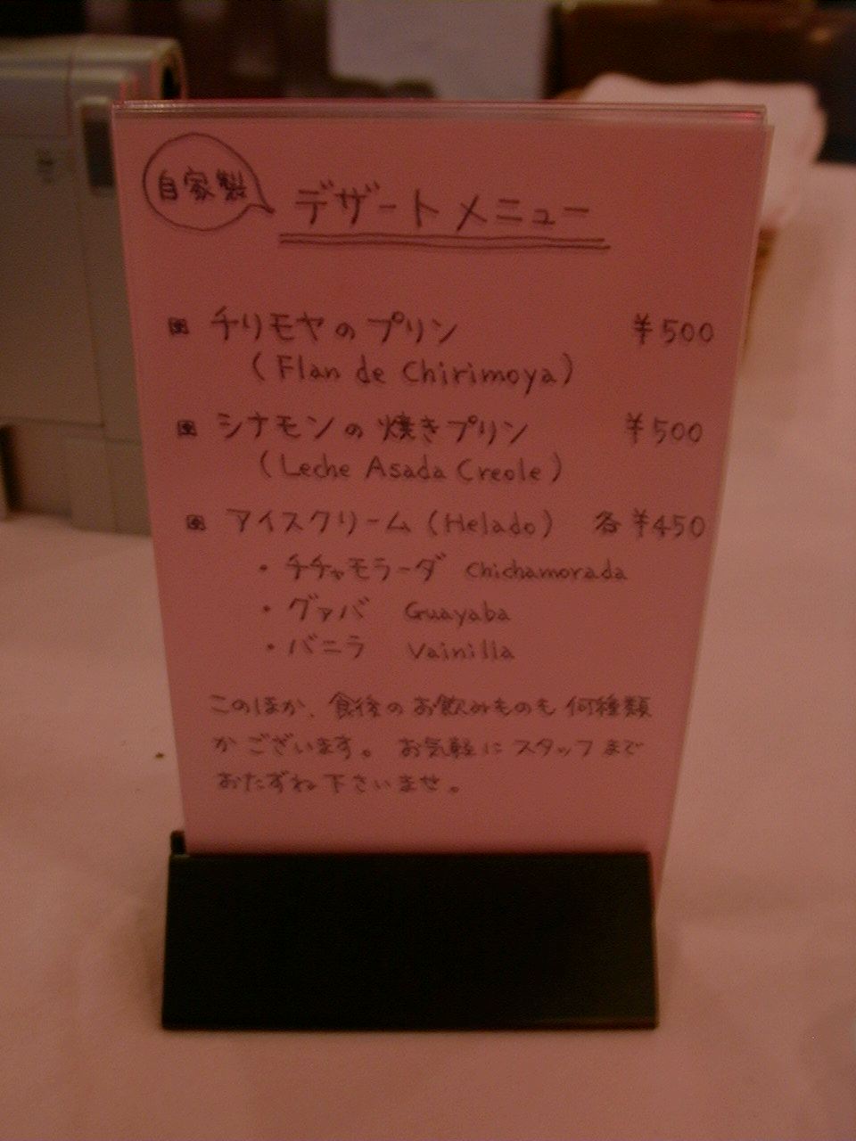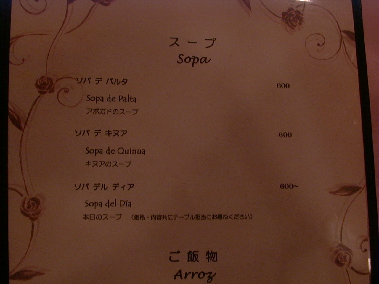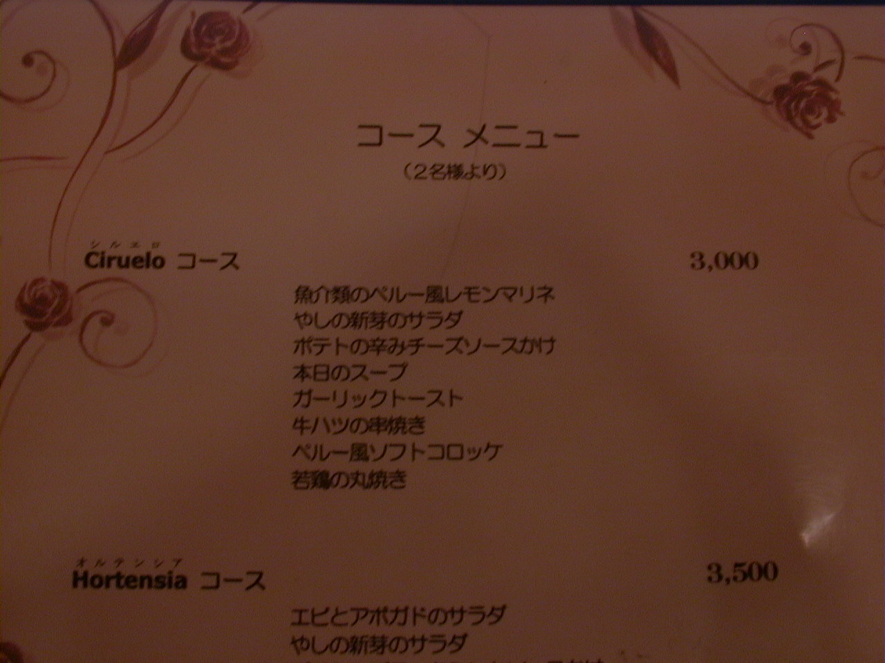 2000/9/30: クリオールのメニュー