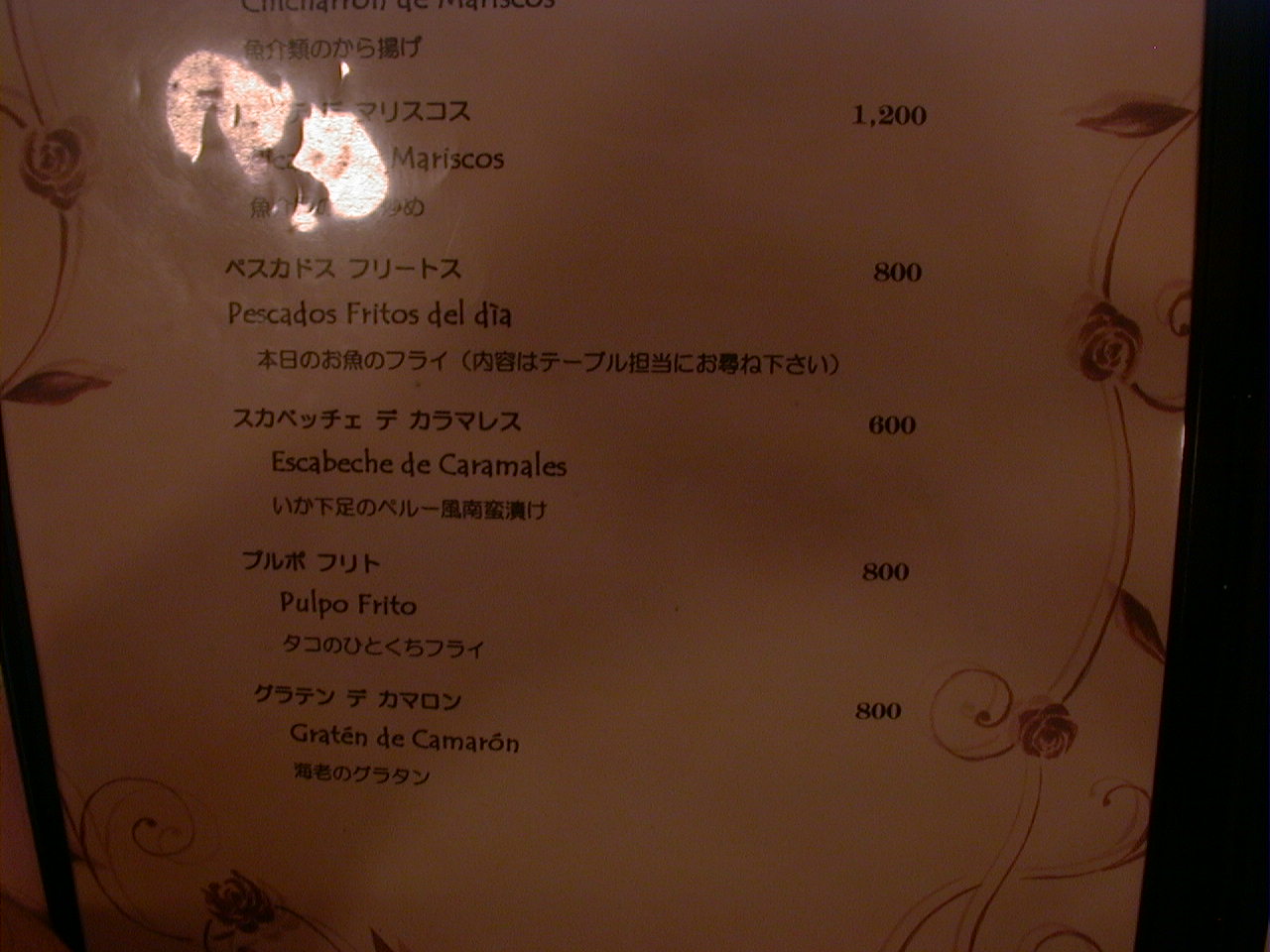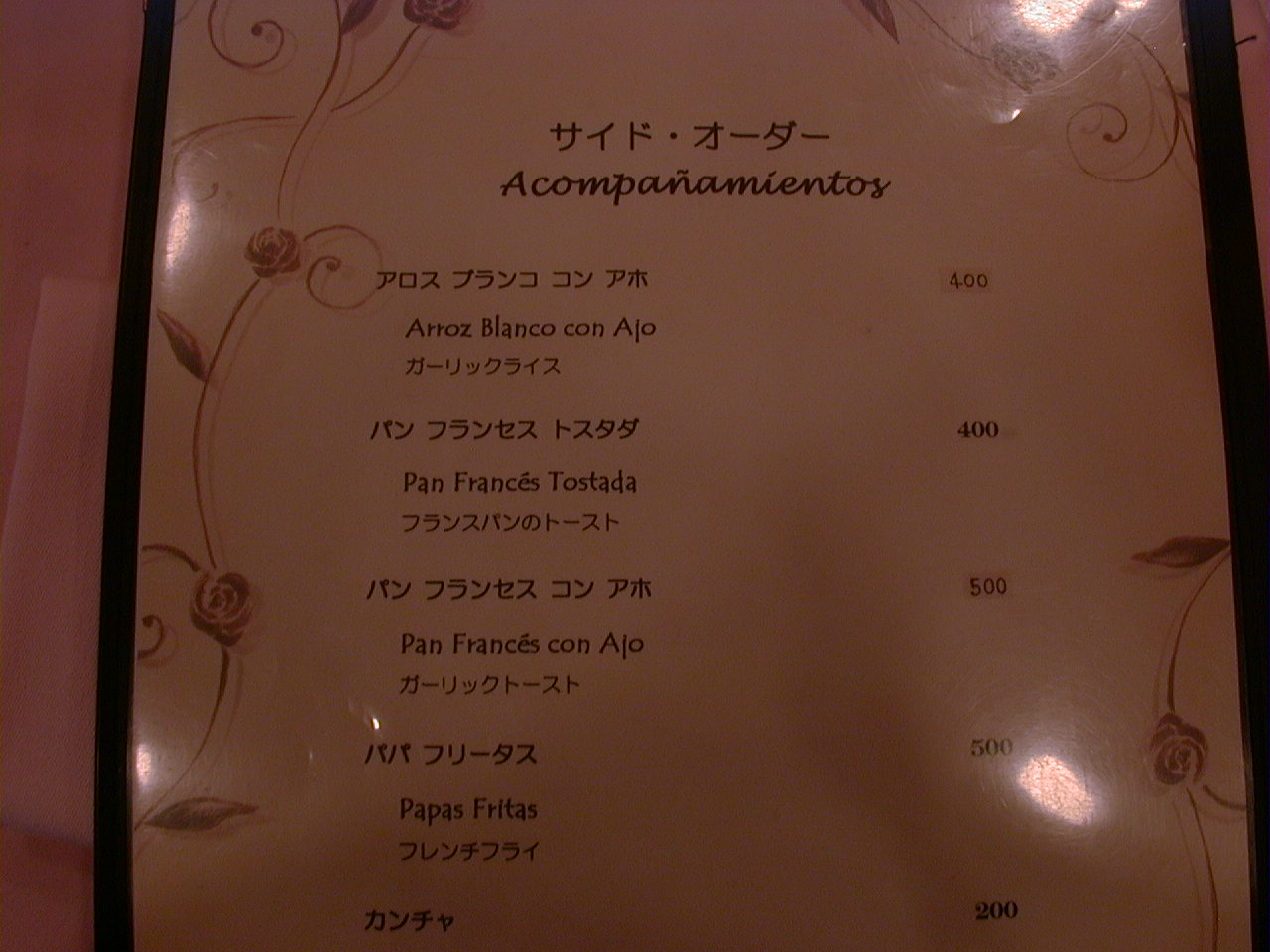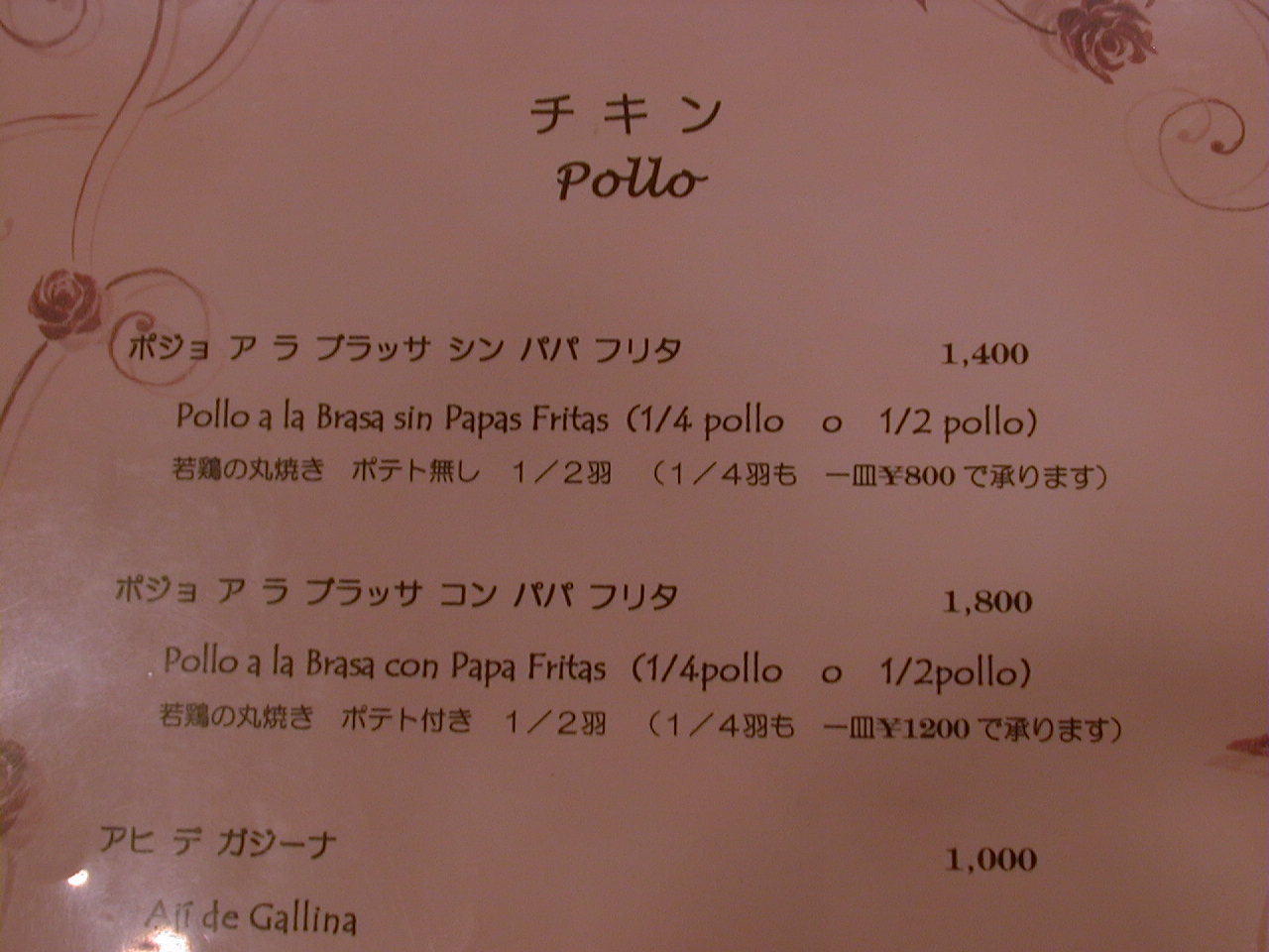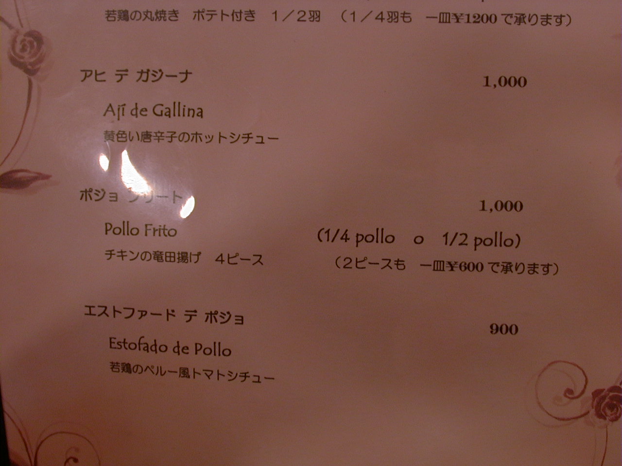 2000/9/30: クリオールのメニュー