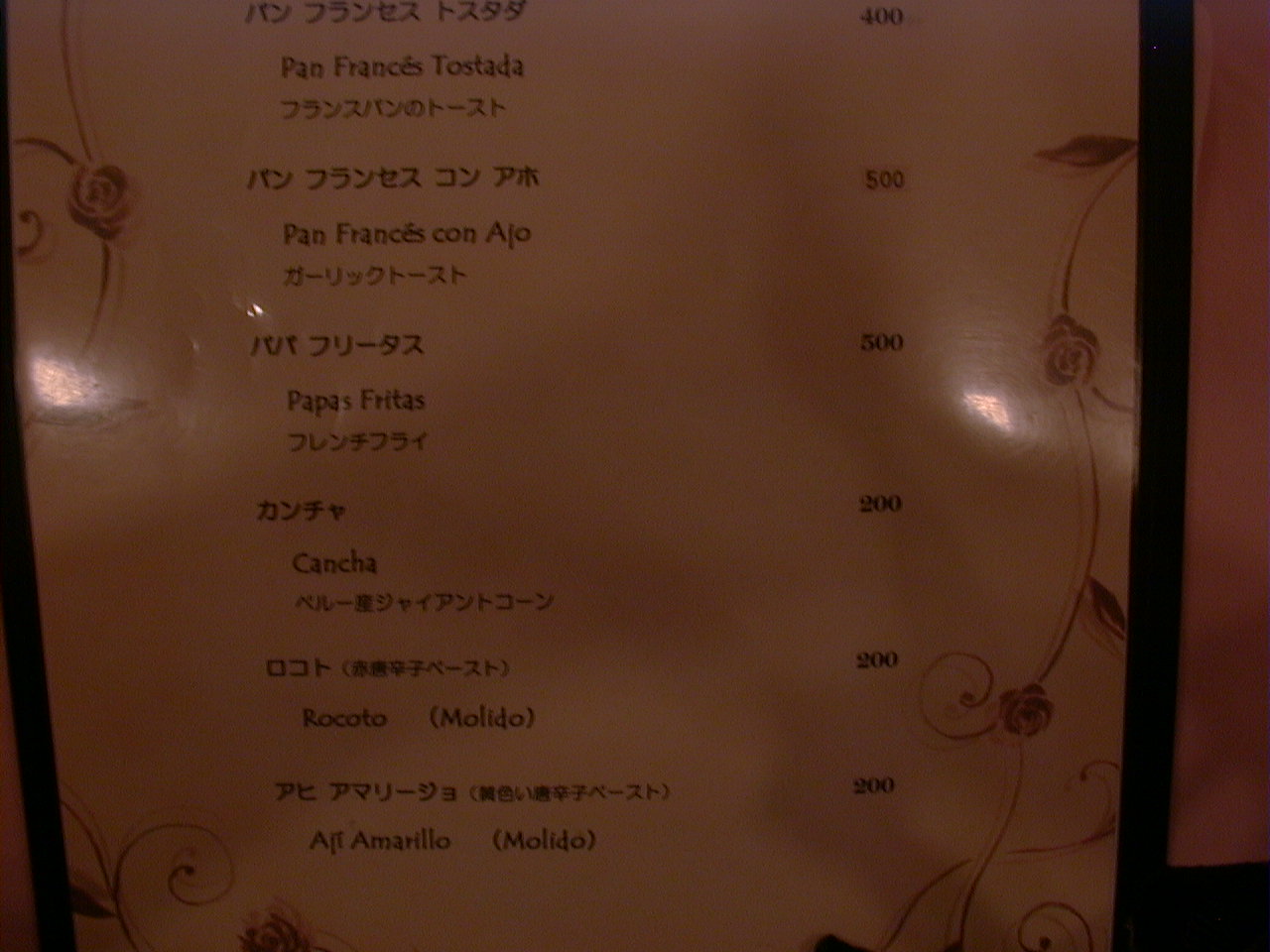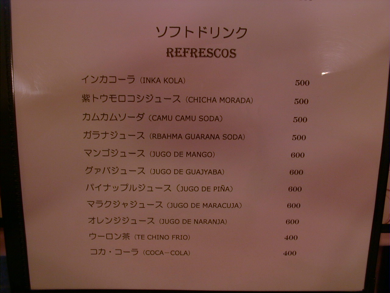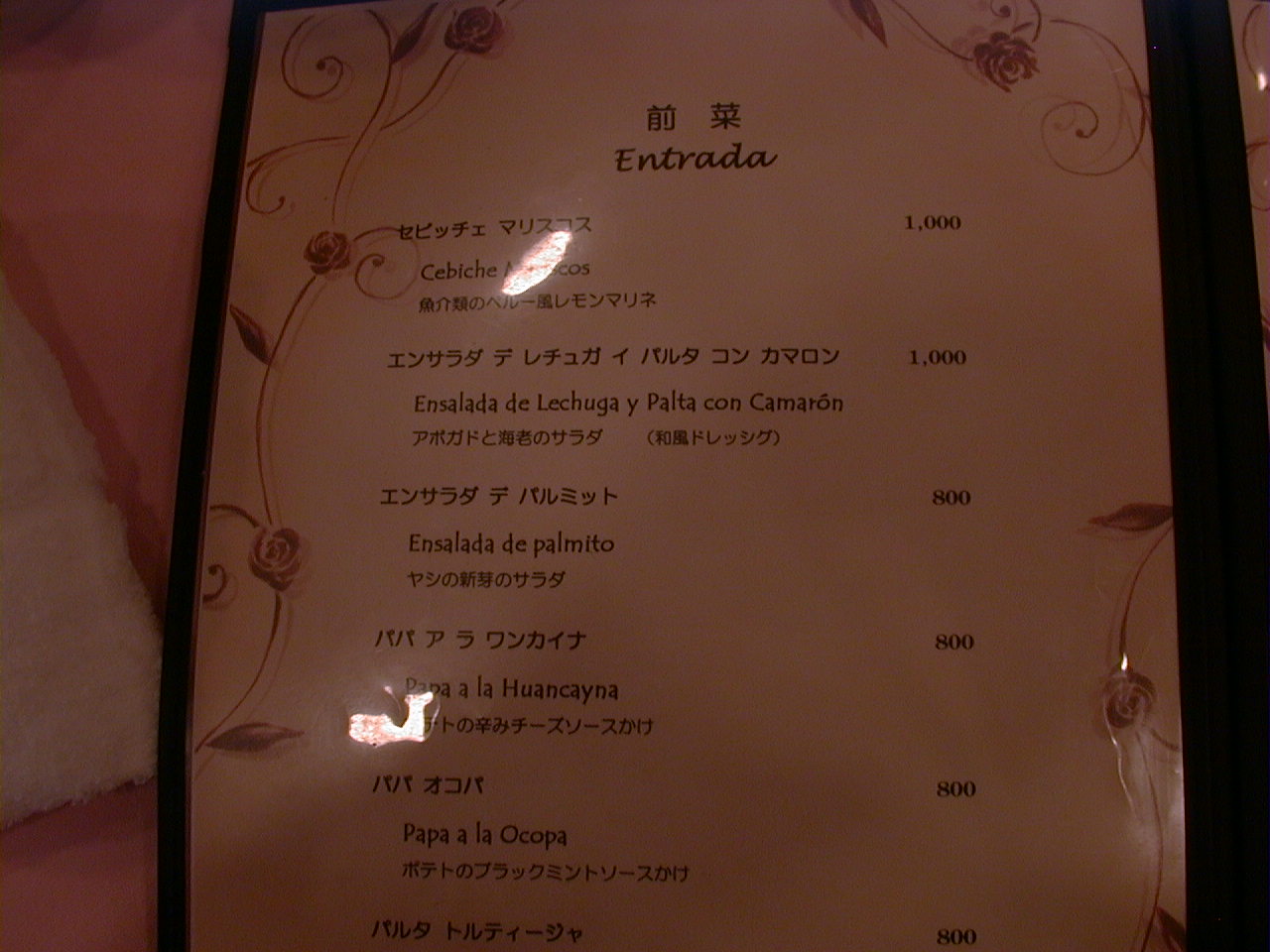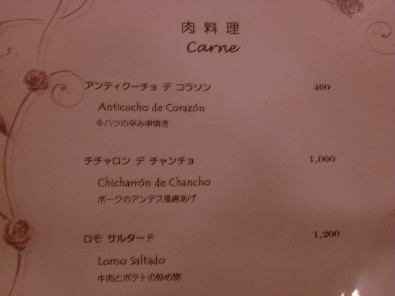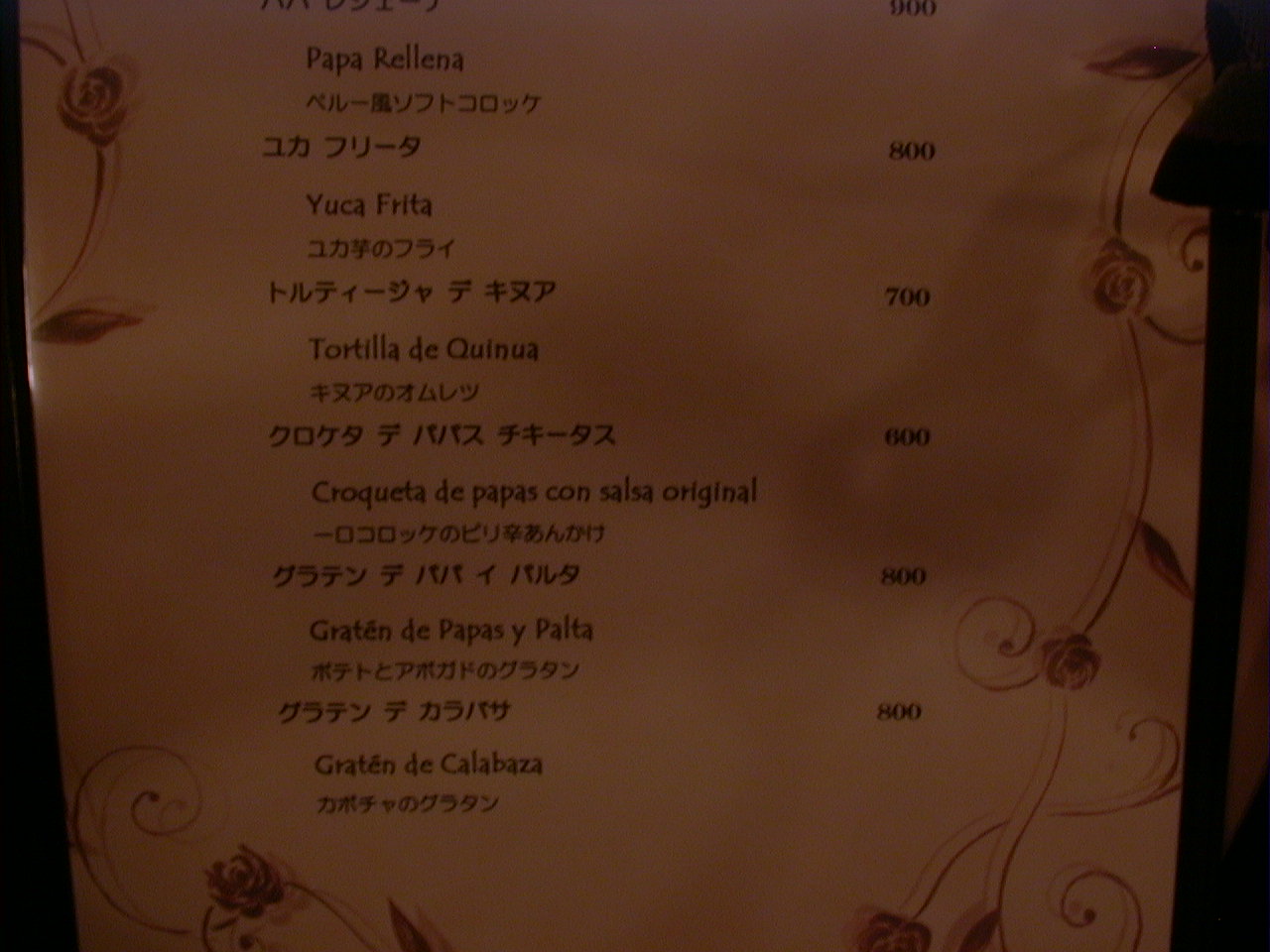 2000/9/30: クリオールのメニュー