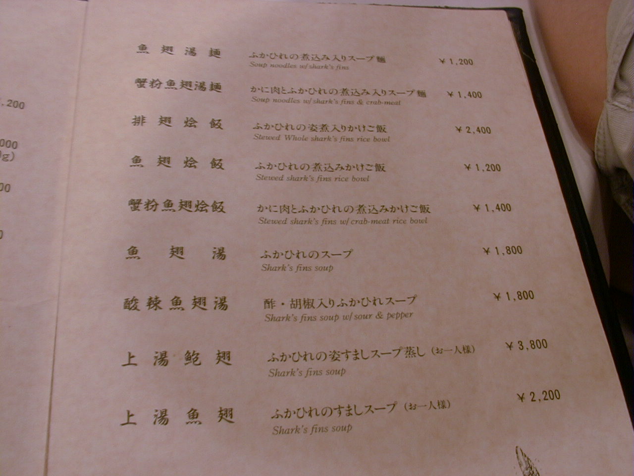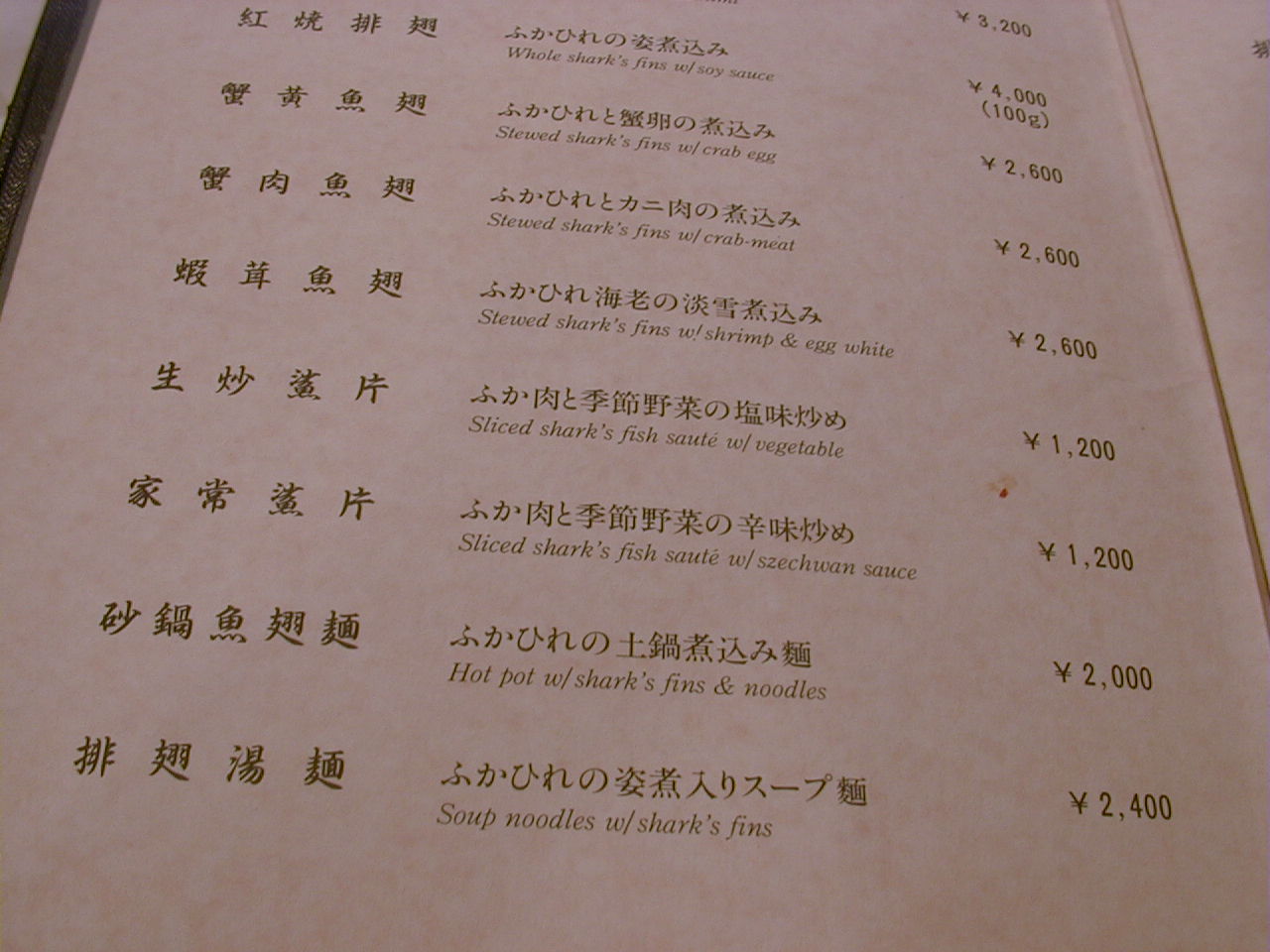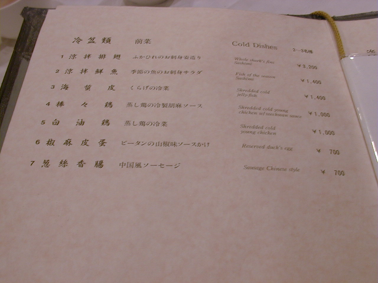 2000/10/14: 筑紫樓・本店のメニュー