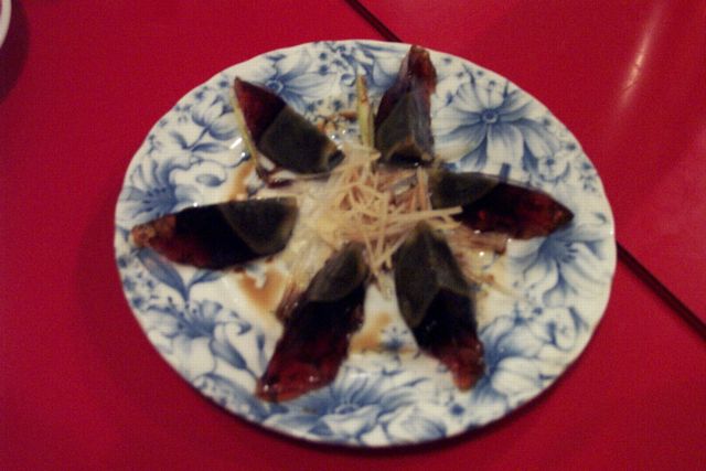 普通のピータン同様美味しいですが、聞かないと、烏骨鶏だかどうだか、わからないですね。(JK)