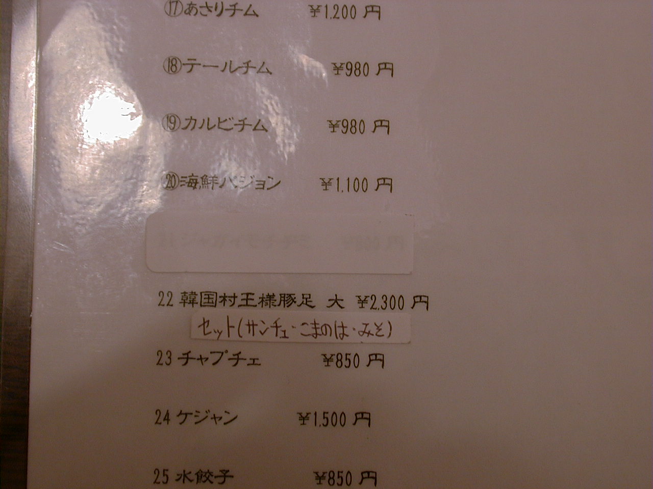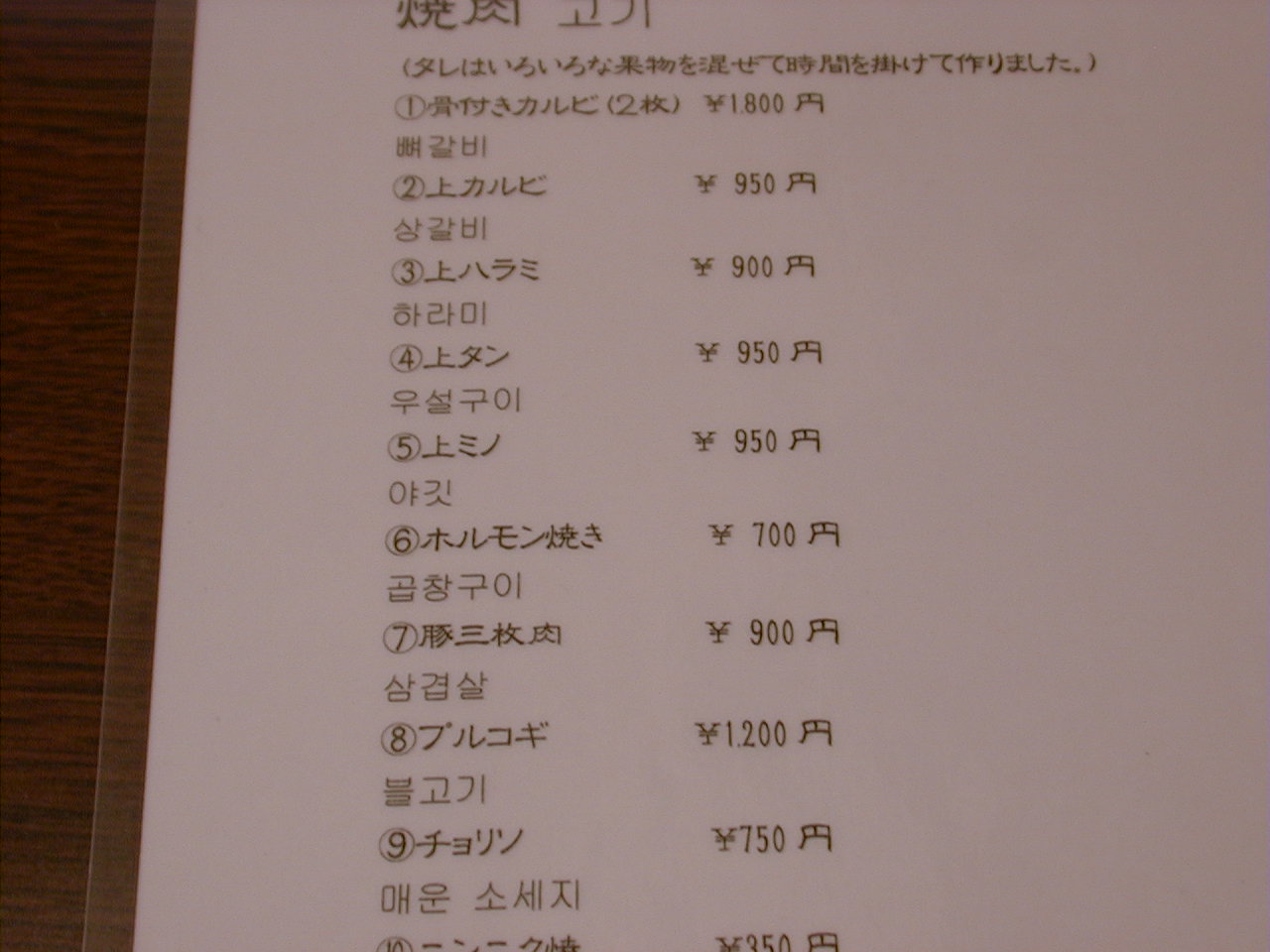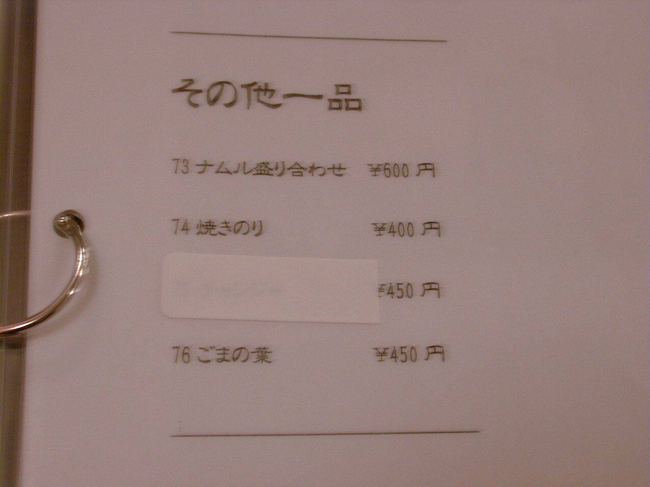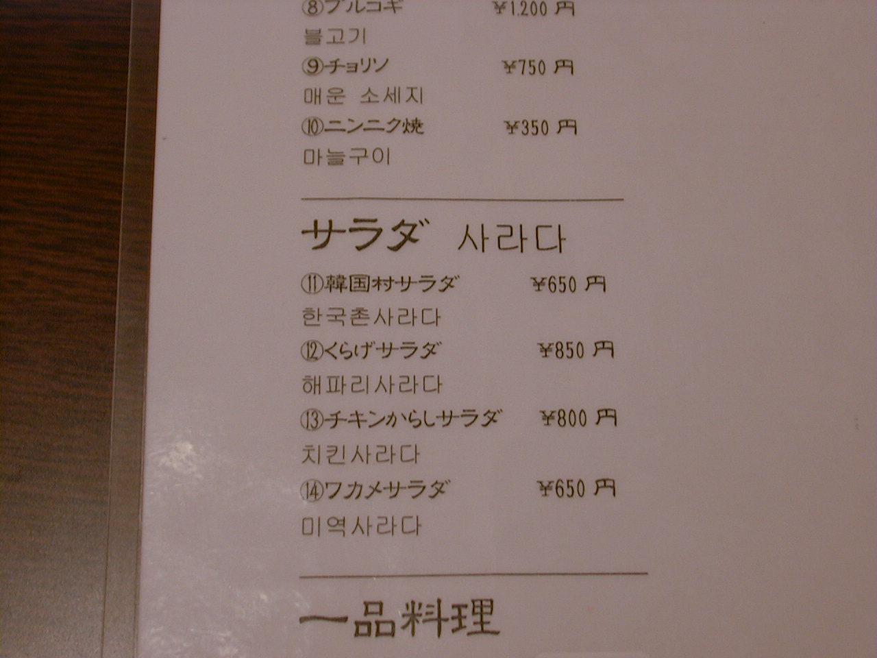 2000/12/2: 韓国村のメニュー