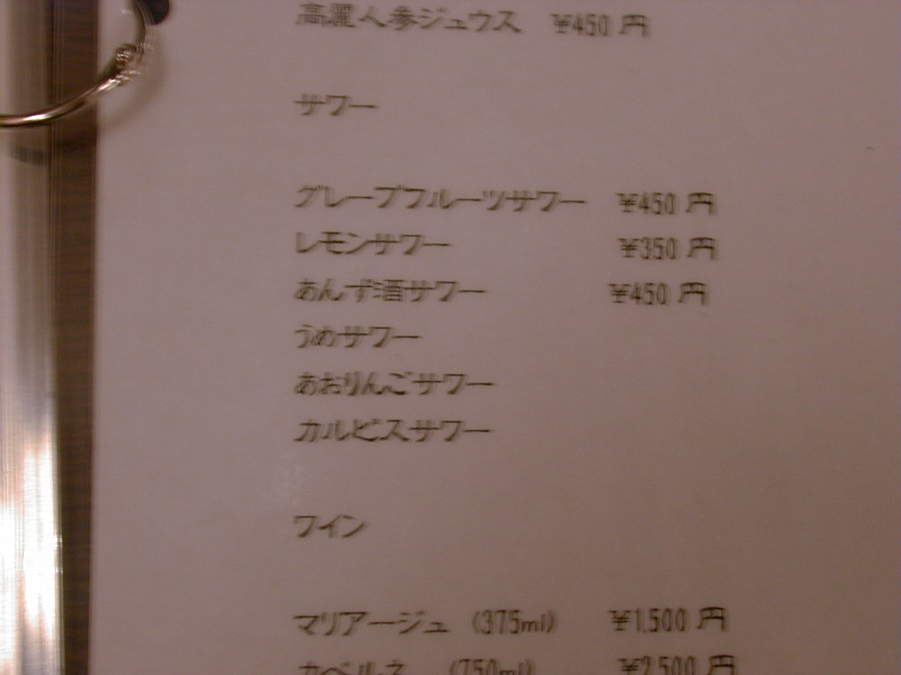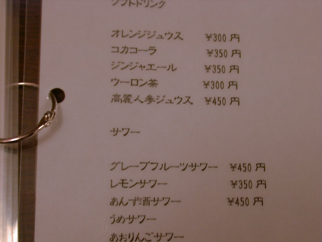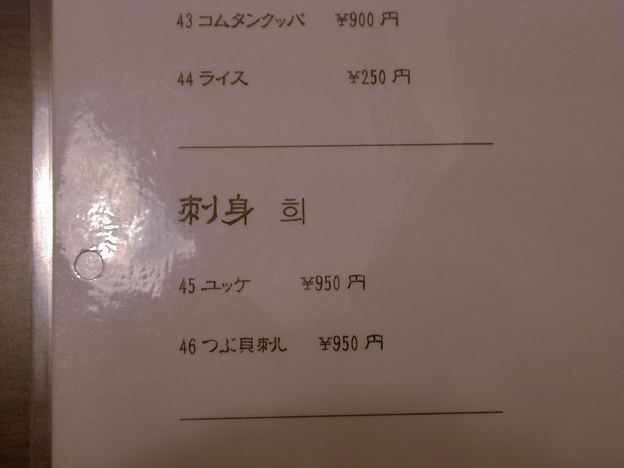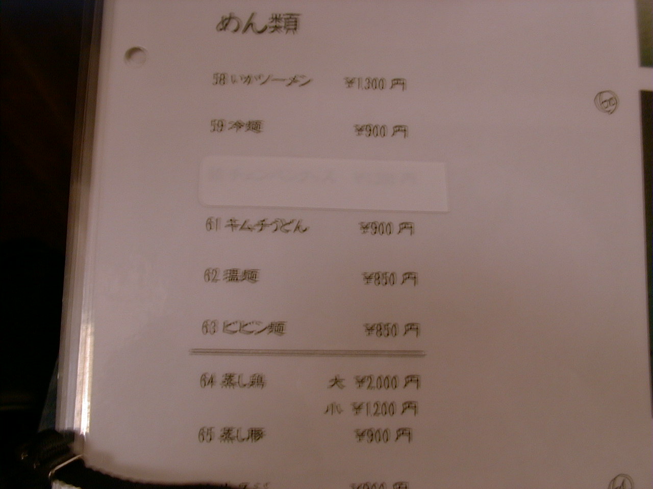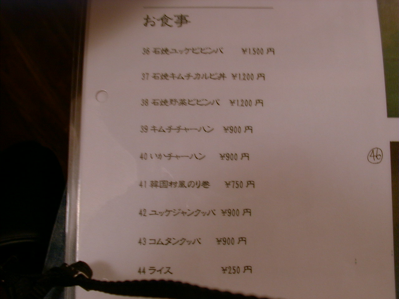 2000/12/2: 韓国村のメニュー