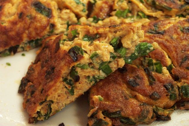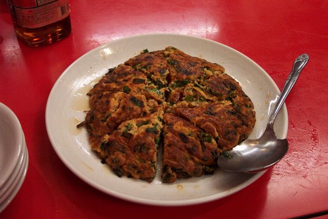 - とき卵の中に韮と挽肉を加えて鍋の形にこんもり山形に焼き上がってます。一見スペインオムレツのような感じです。稲さんの報告ページを見たとき味を想像して無性に食べたかったものなので、お食事会で食べられてラッキーでした。しかし卵の中心部分まで完全に火が通っていて、ちょっとぱさっとした感じを受けました。表面のきつね色にカリっとした部分+トロ〜っとした半熟部分が残っているとうれしいなぁと思ったものです。もちろんこれは完全に私の好みなので、お店側にこうして欲しいと押しつける気は毛頭ありません。 (az)