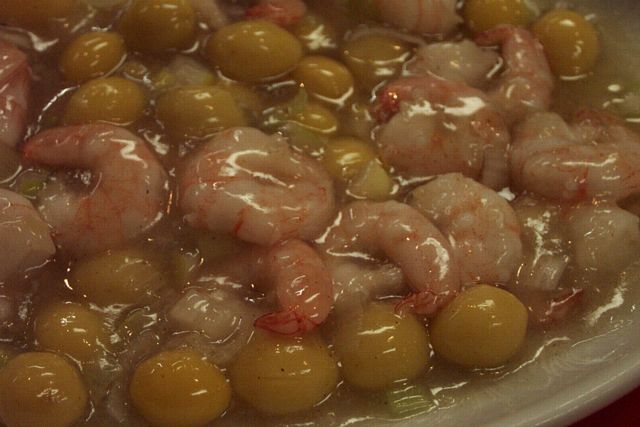 - 蝦と銀杏の塩味うま煮あんかけです。蝦のきれいな赤と火の通った黄緑色に輝く銀杏が見た目にもきれいです。半透明のあんにぎゅぎゅーっと旨みが封じ込められているのがとっても不思議です。塩加減もばっちりなので、あんをふき取るようにたくさん食べても問題ないです。随分銀杏を食べてしまいました。(az)