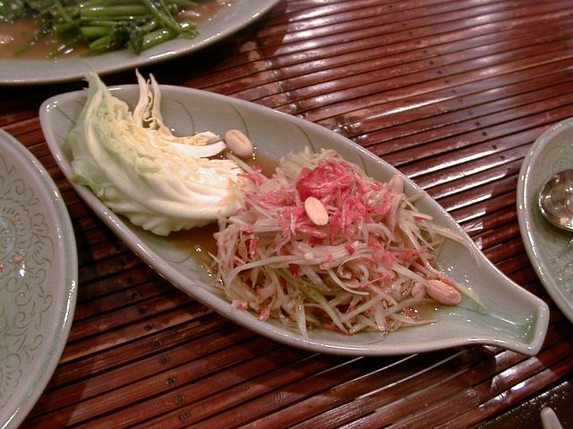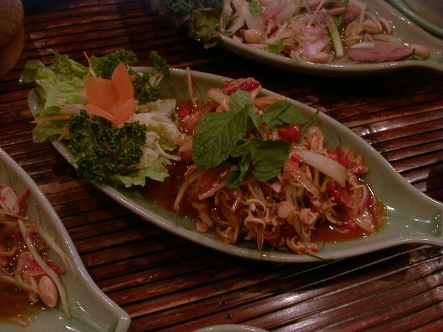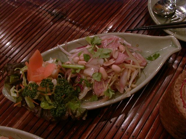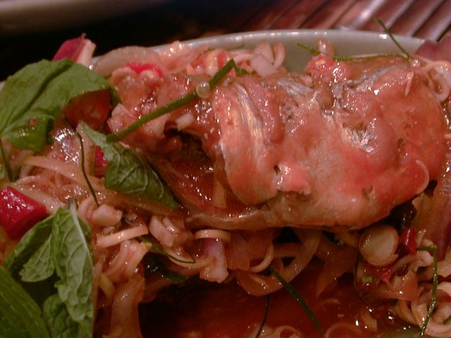 グンチュアナムプラーに巨大なニンニクのスライスが乗っていてビビったけど、食べてみたら美味しかった(翌日はかなりキますが)。