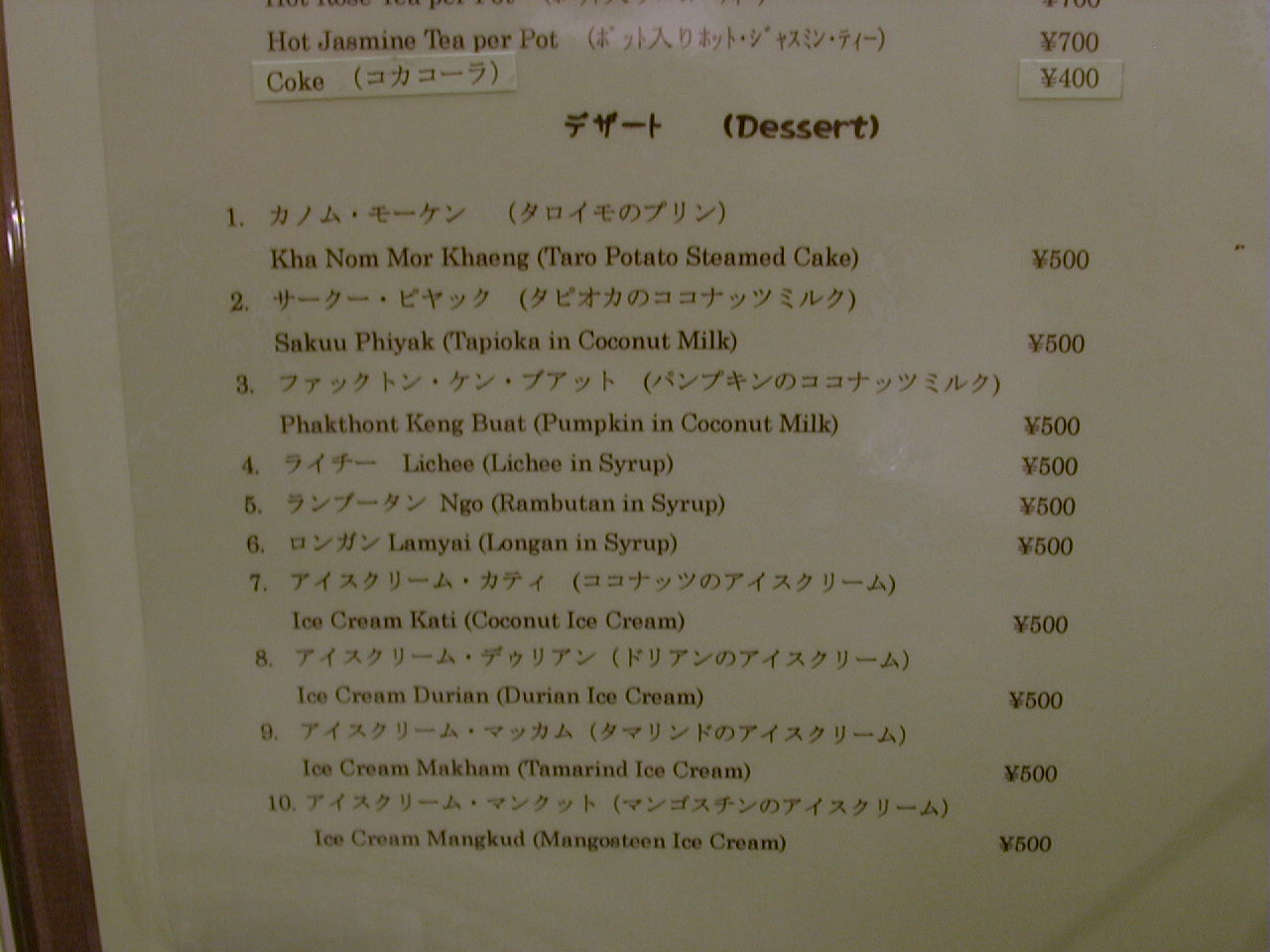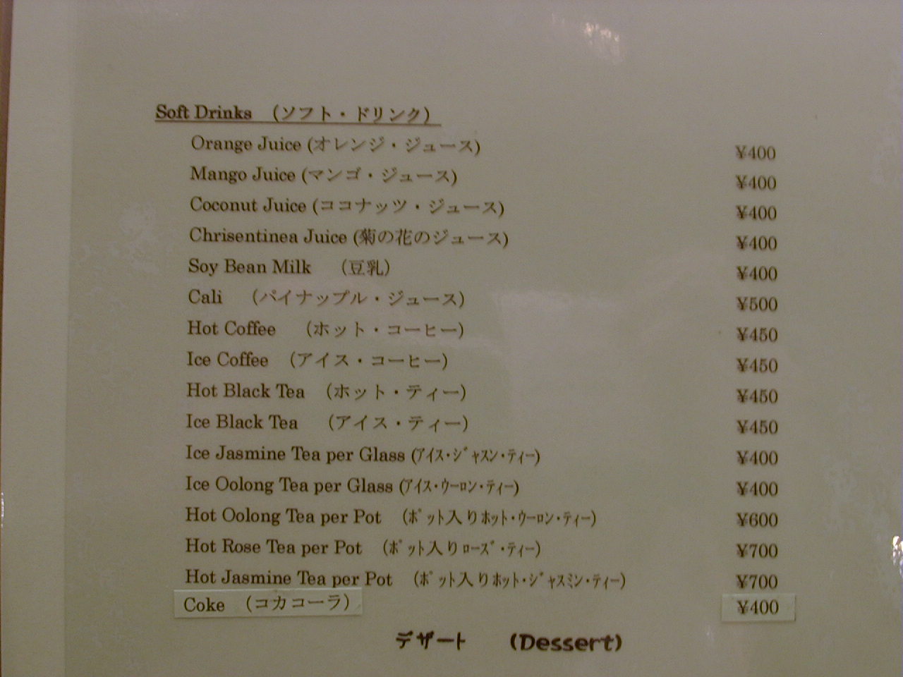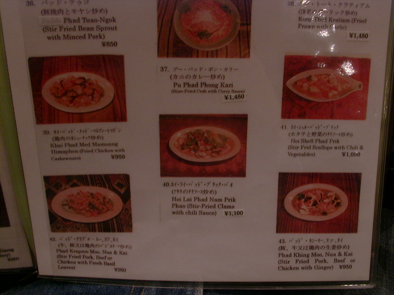 2001/2/24: セラドンのメニュー