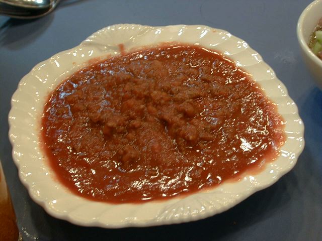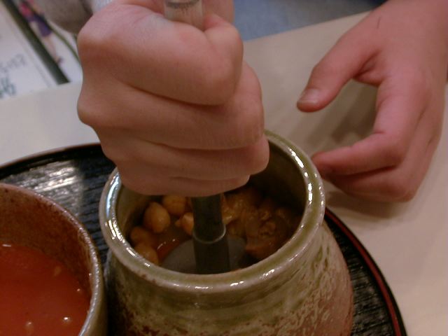 - アブグッシュトのスープにナンを入れたところ。ナンを入れてふやかして食べるのだそうです。