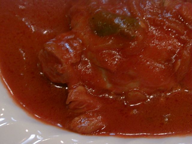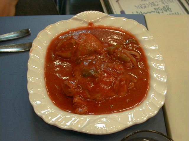 - トマト味の濃いカレースープでチキンを柔らかく煮込みました。