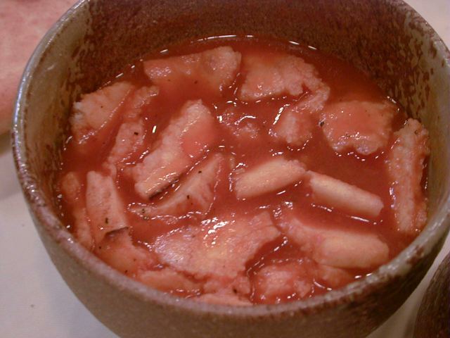 下の7枚目の写真で、azukiさんの右後方に写っている人、骨付き肉が入っている料理を食べ終わった後、残った骨を持ち帰り用にラップ包装してもらっていたけど、持ち帰った骨は、ペットの犬にでもあげるのかな?(び)