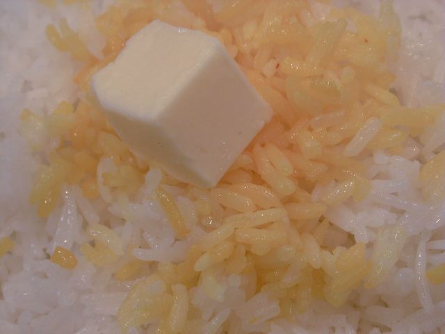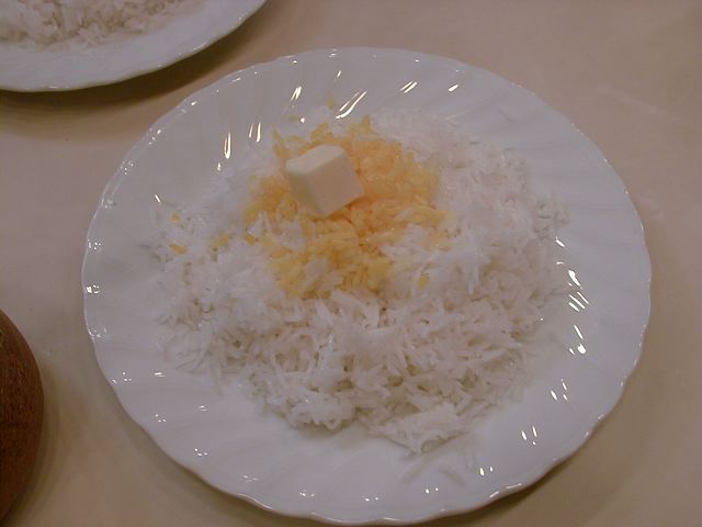 - 長粒米のサラサラの炊き具合がとってもいいでしょう。カレーとの相性抜群でしょう。お昼は、このライスとカレーのセットで490円(野菜カレーのセット)から食べられるんだよ。わたしは、590円のチキンカレーのセットがお気に入りだけどね。(び)