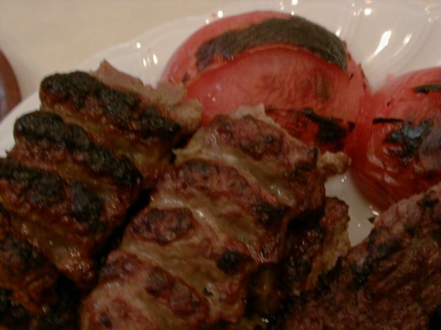 - クビデー(マトンミンチの焼肉)と焼きトマト