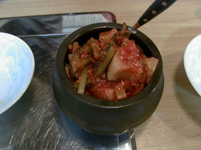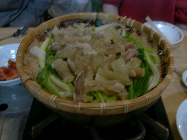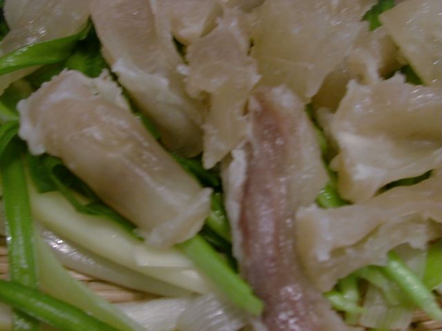 牛の膝のコラーゲン様物質(?)を蒸した料理は、ゼラチンを得意としない私にはつらい一品でした。(な)