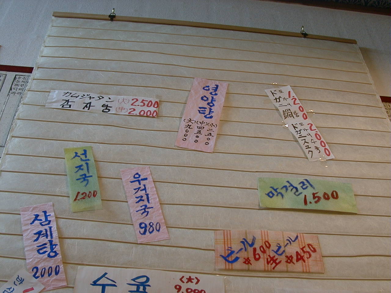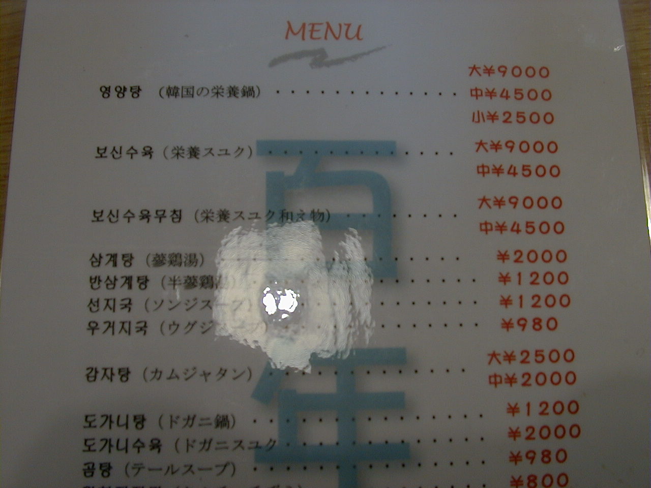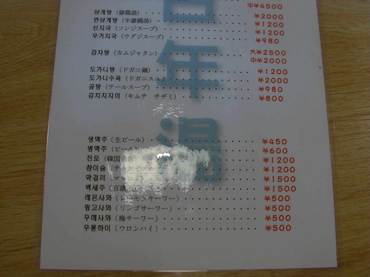 2001/3/24: 百年湯のメニュー