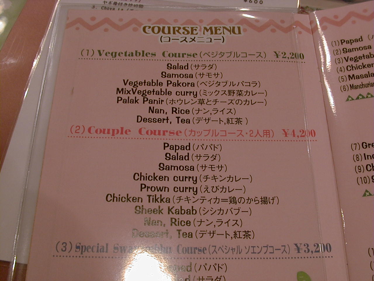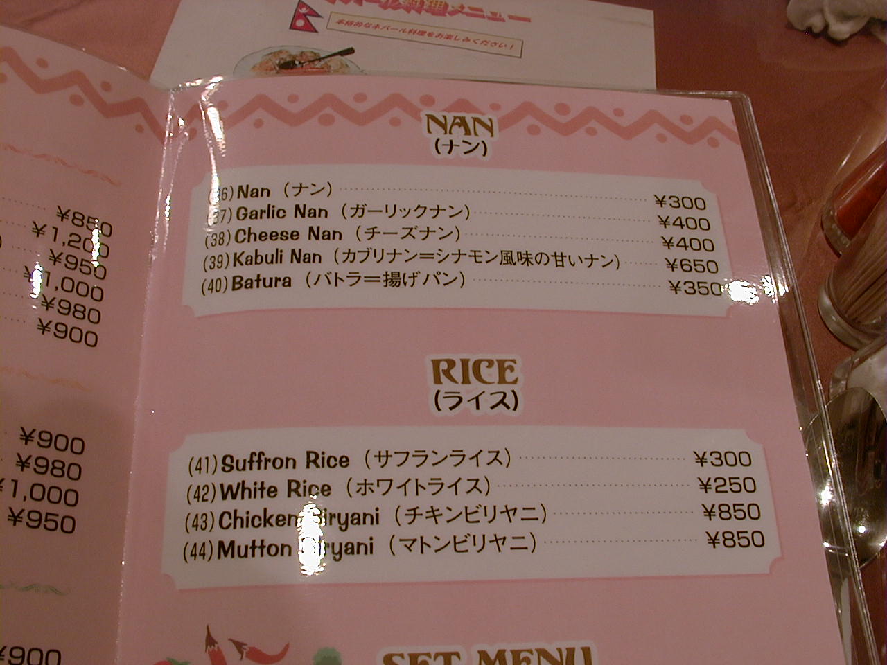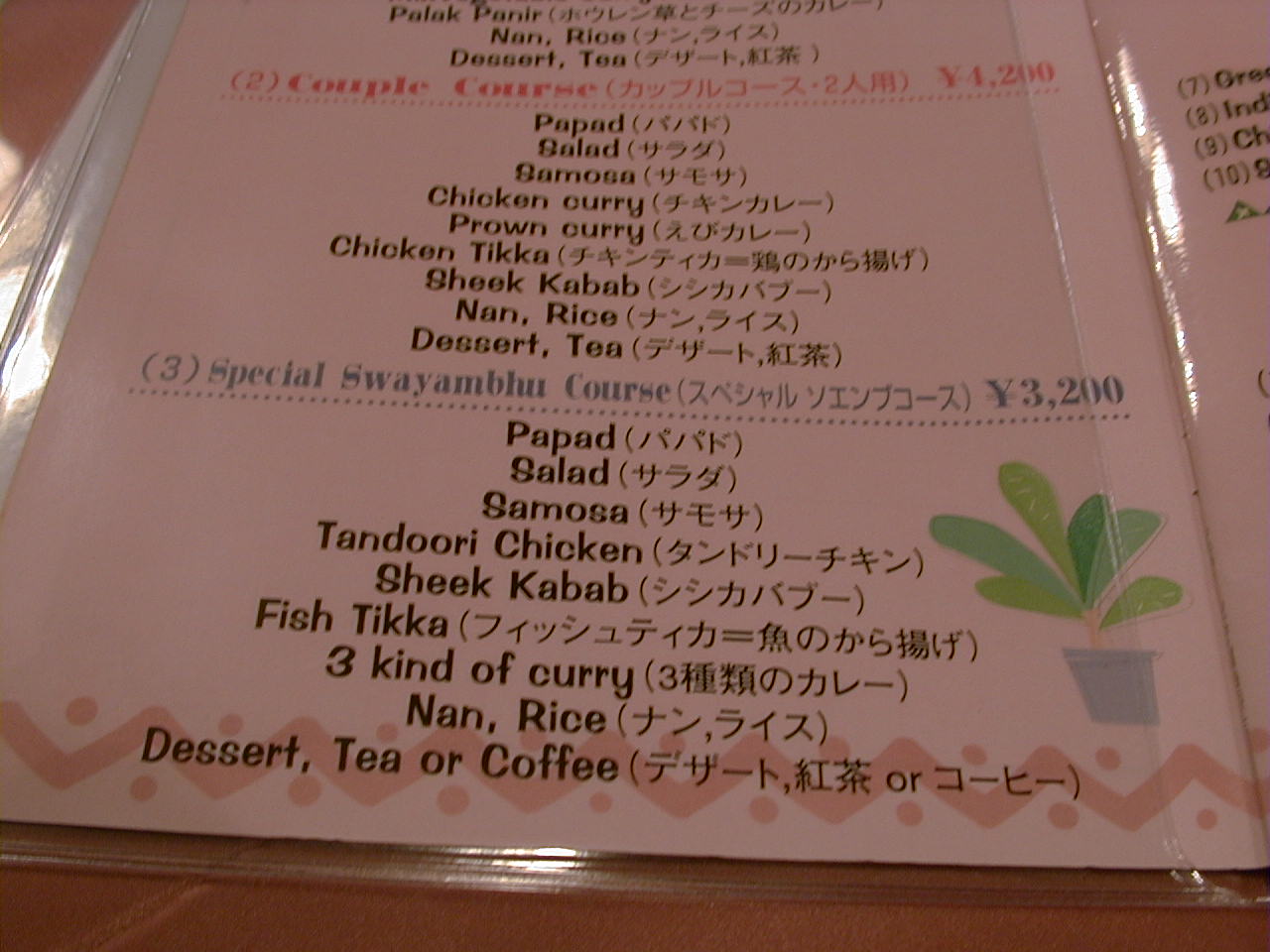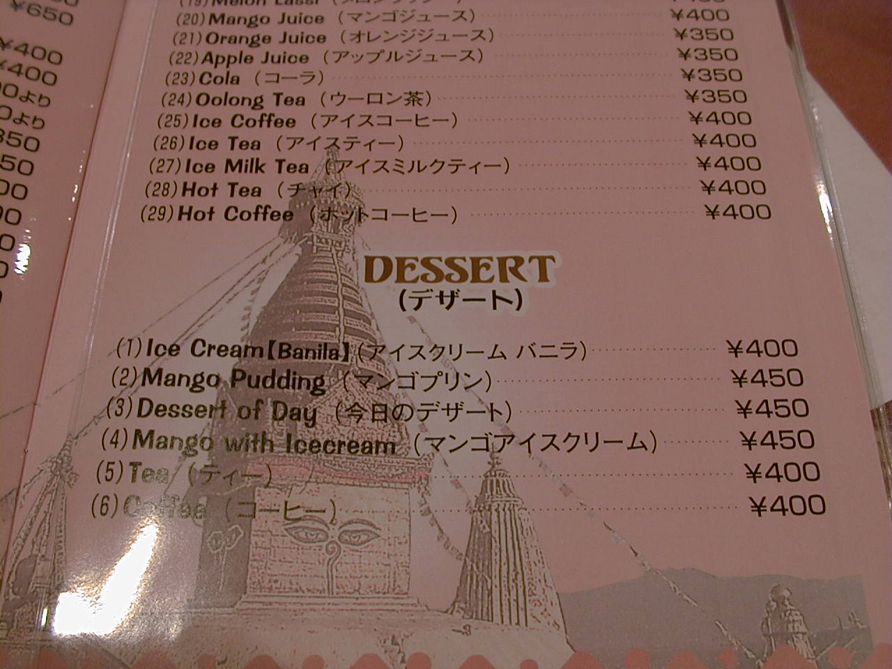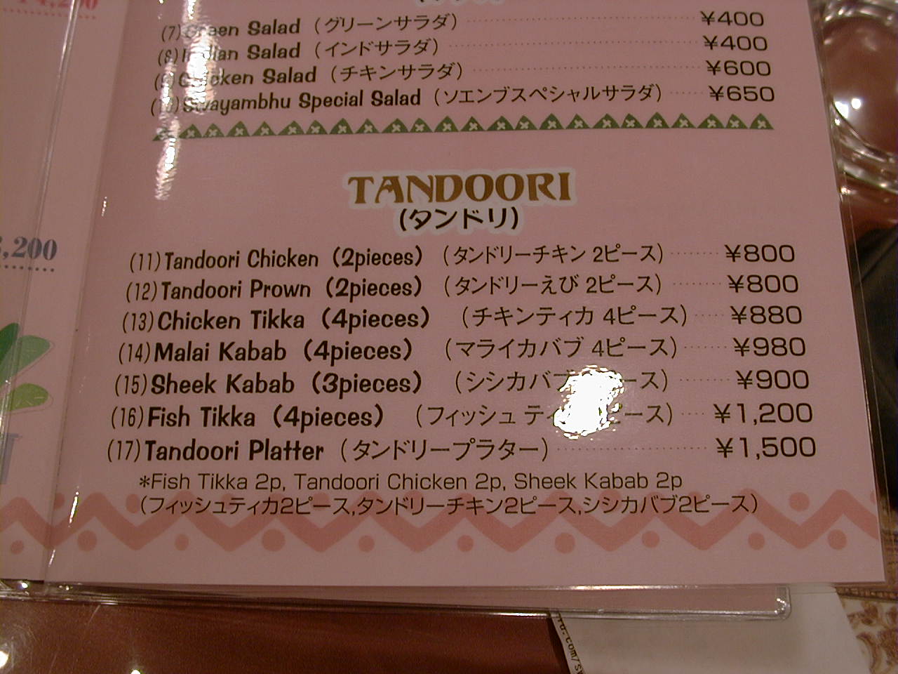 2001/4/7: ソエンブ(SWAYAMBHU)のメニュー
