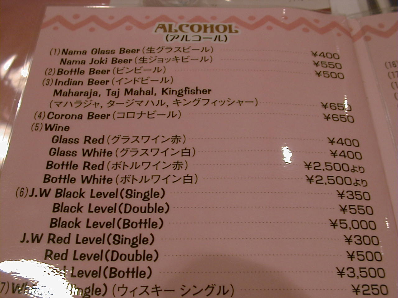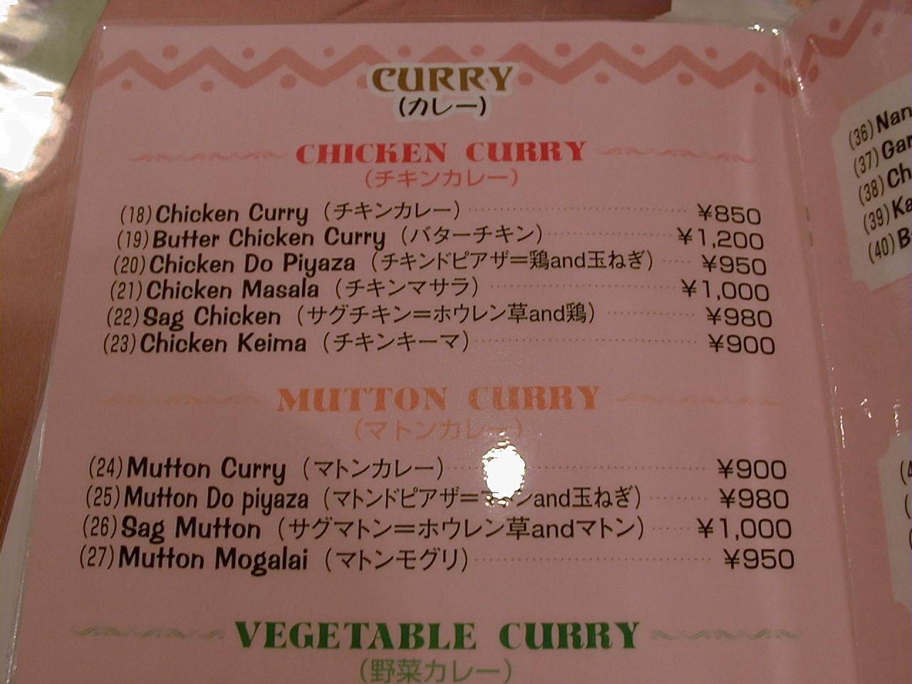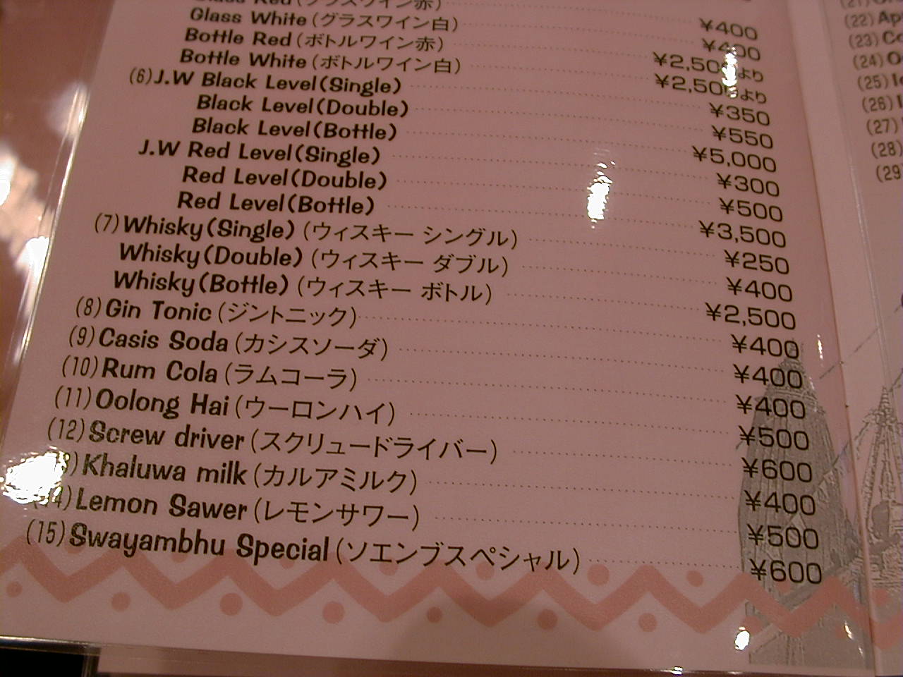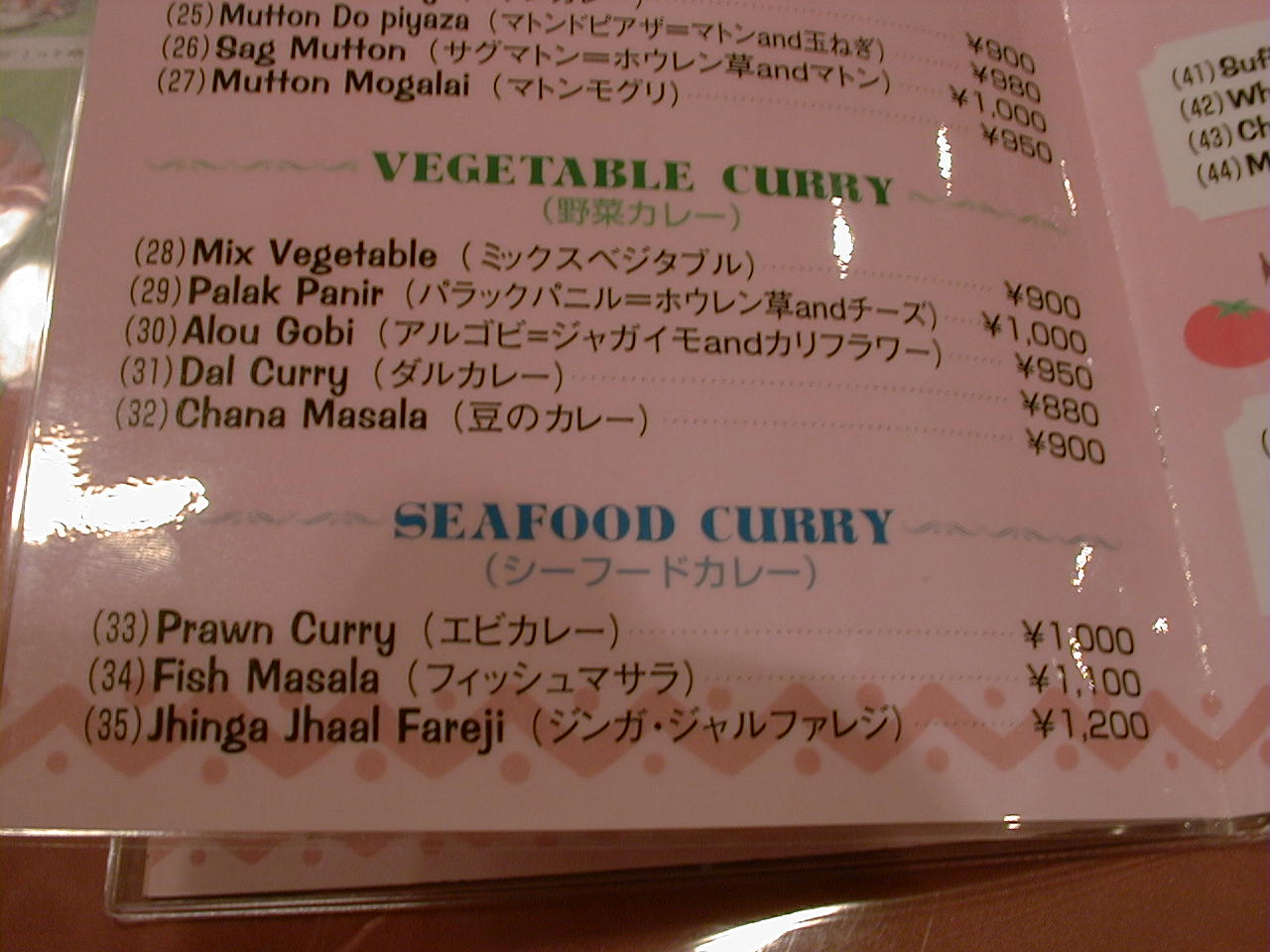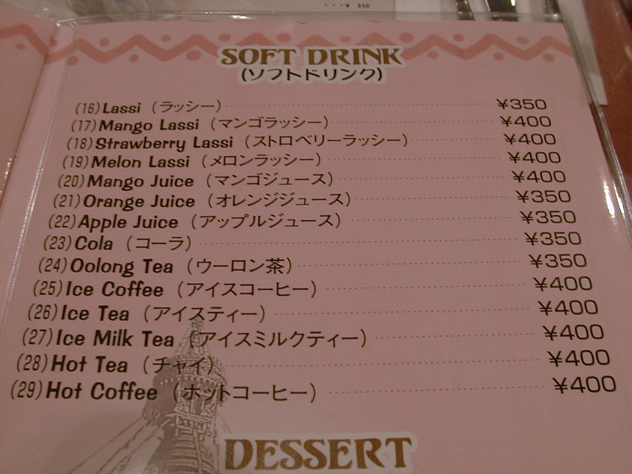 2001/4/7: ソエンブ(SWAYAMBHU)のメニュー