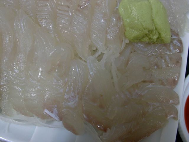 - 店のおばちゃんは、「魚は生きてるの使わなきゃだめなのよぉ」と言っていました。てことはこのヒラメもさっきまでいけすかなんかで生きてたんでしょうか。全体に肉がむちむちして美味しかった。縁側もgood。(い)