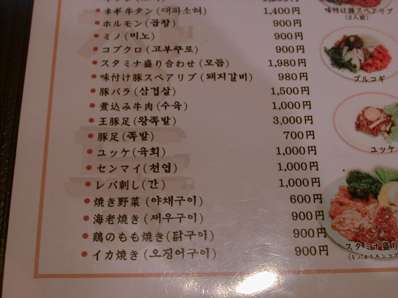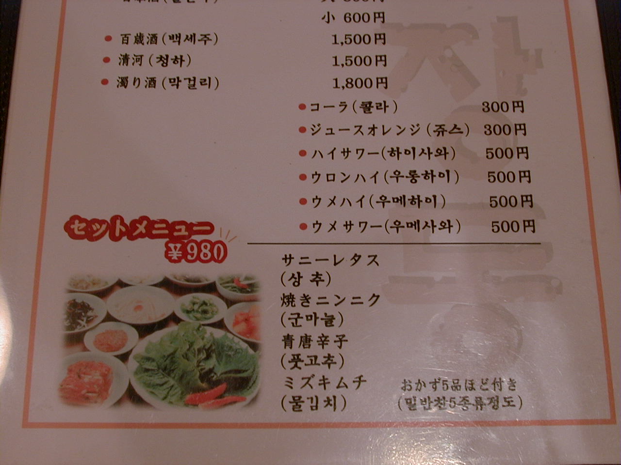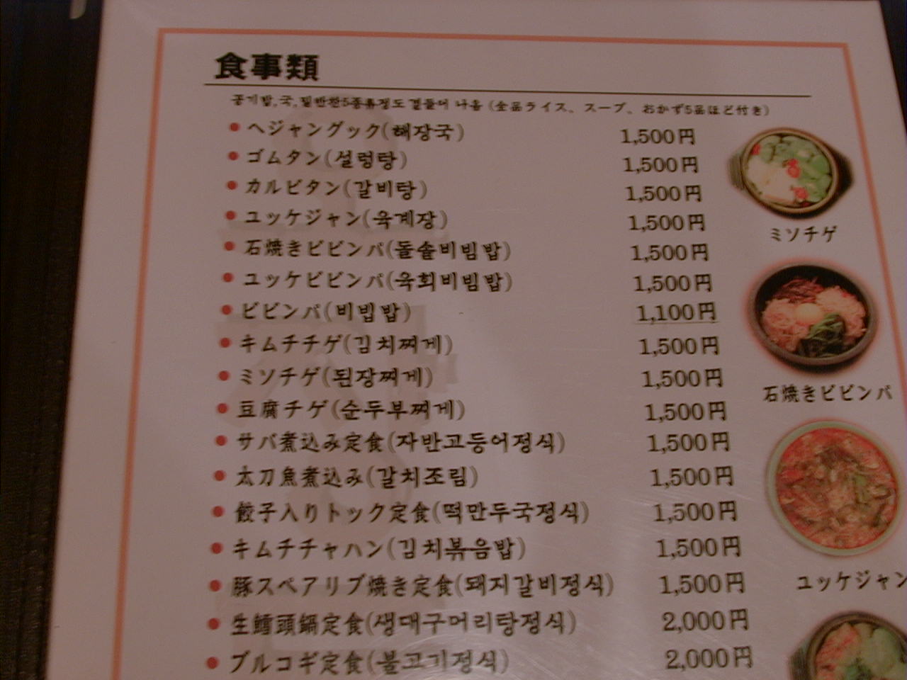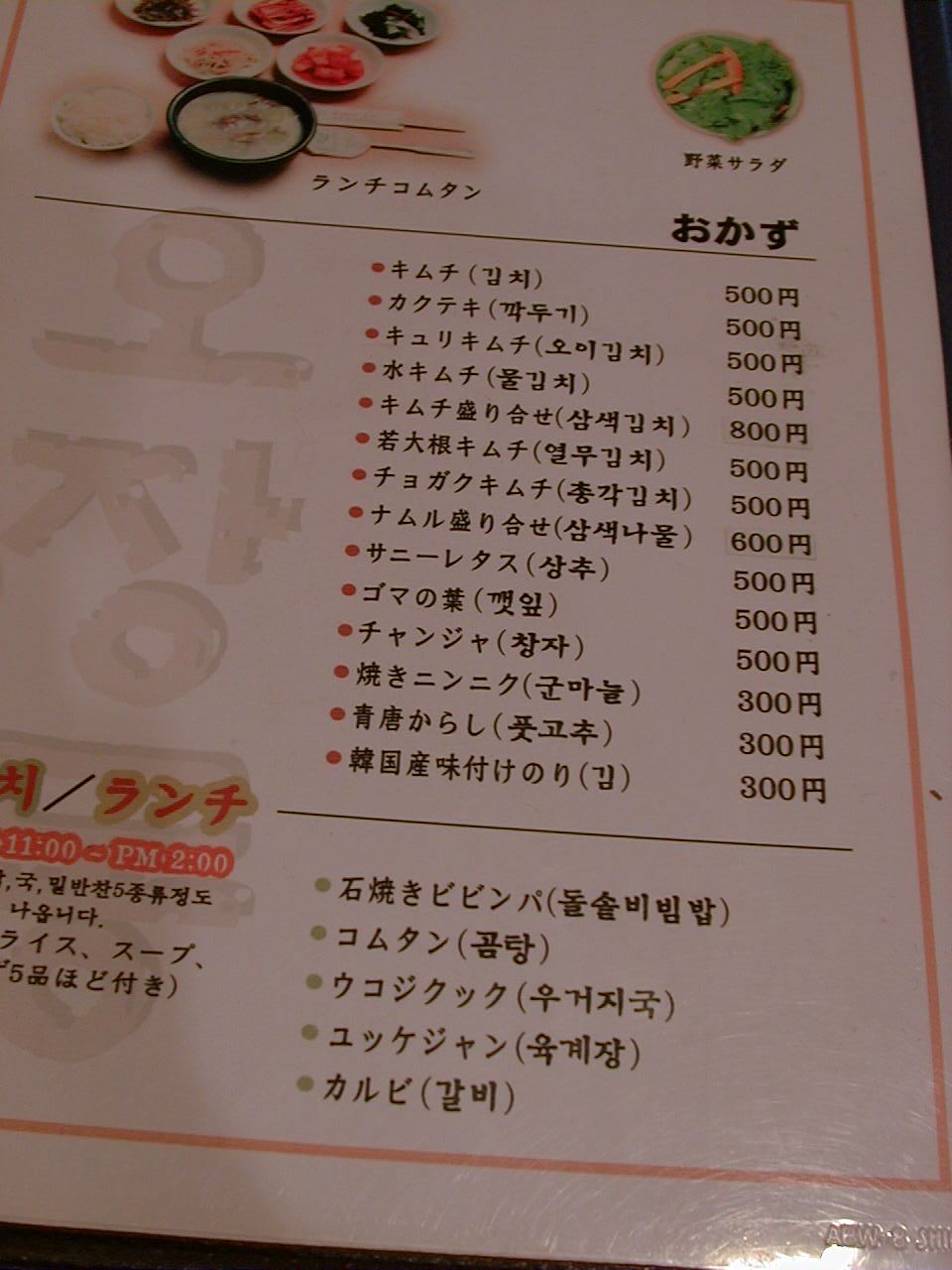 2001/5/19: オジャンドンのメニュー
