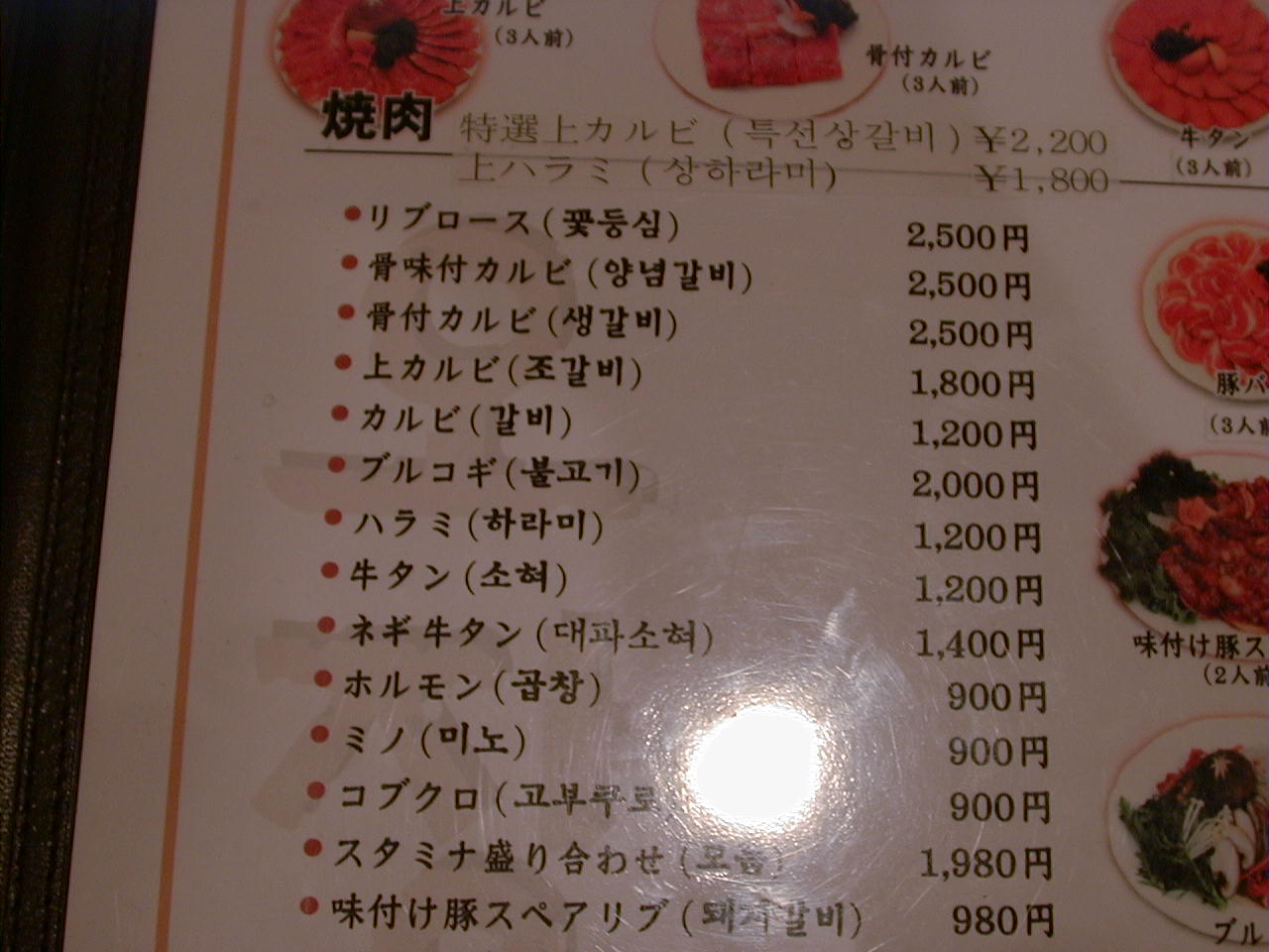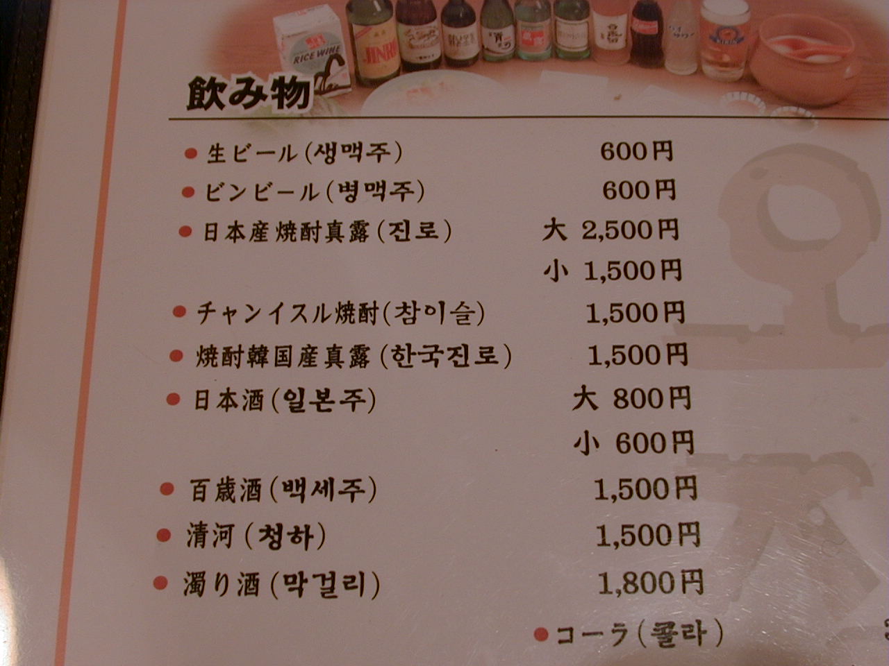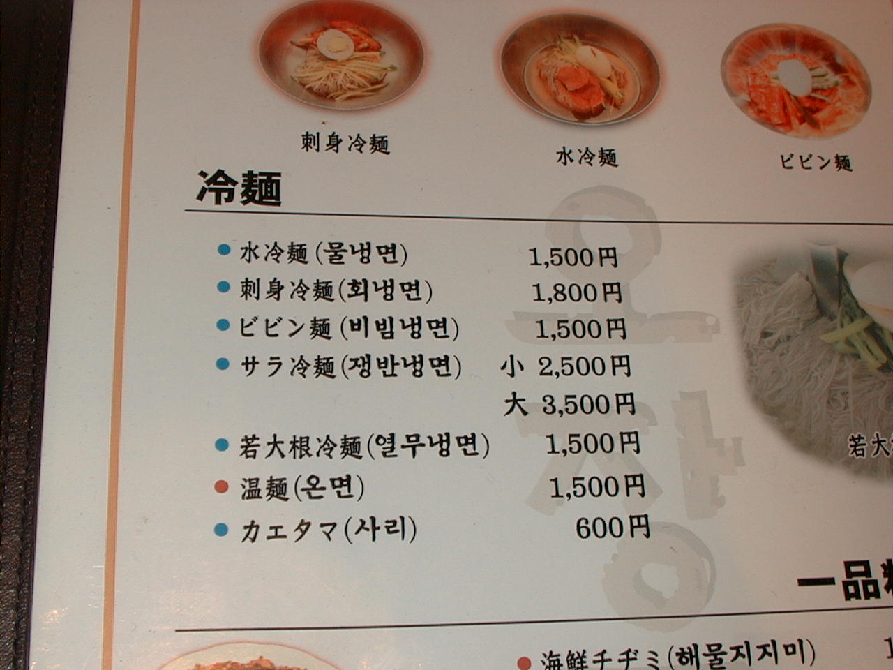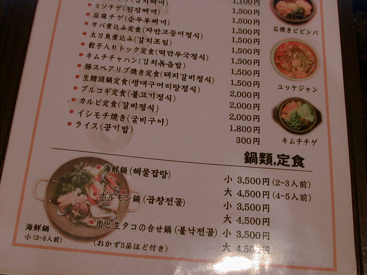 2001/5/19: オジャンドンのメニュー