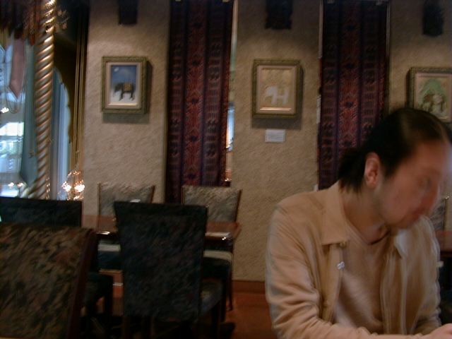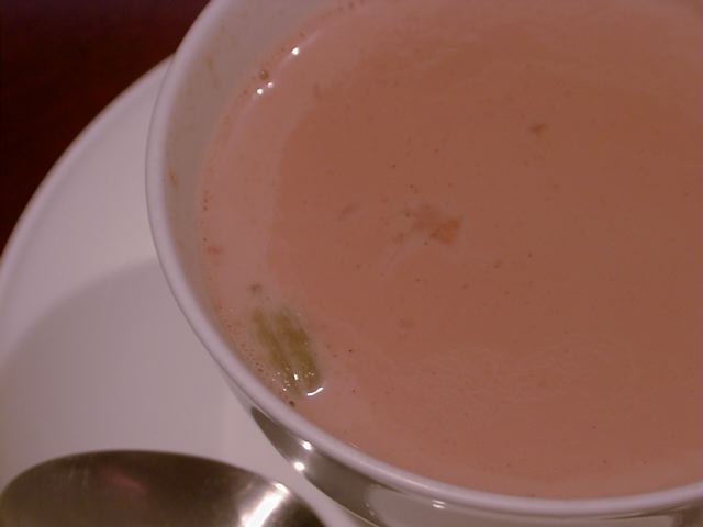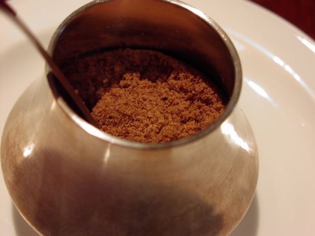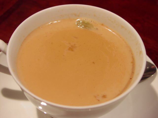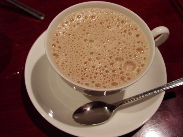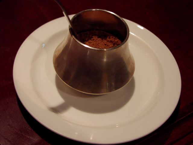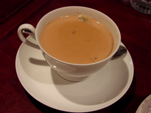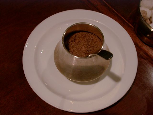 肝心の感想です。ちゃんと甘いのですがコーヒー本来の苦みとカルダモンの実やその他ブレンドされたスパイスのおかげで、食後の口の中をさっぱりさせてくれました。もし、ここでこのインディアンコーヒーを注文するときは、普通のタイプと間違えないようにしてくださいね。(az)