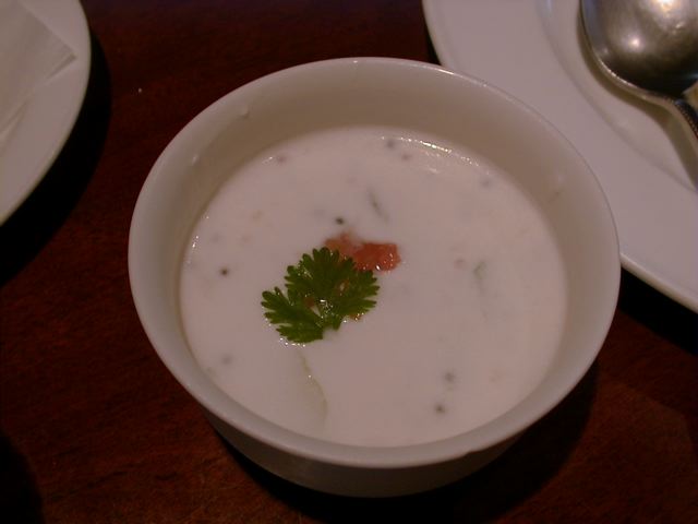 - ライタ(スパイスと刻み野菜入りヨーグルトサラダ)/(フィッシュビリヤーニスペシャルの付け合わせ←人数分用意してもらいました)