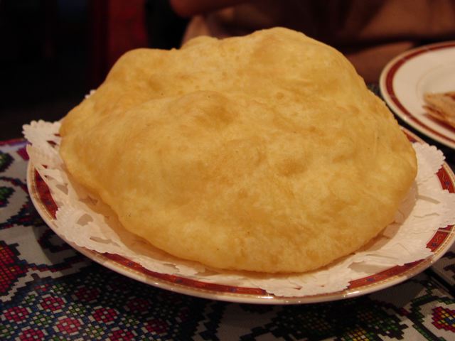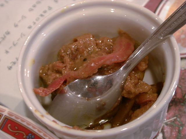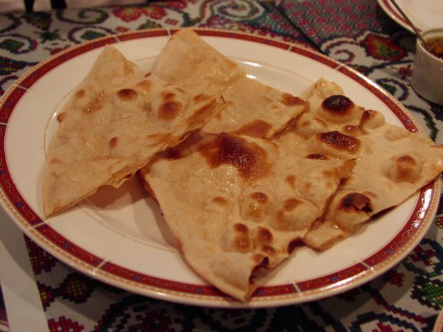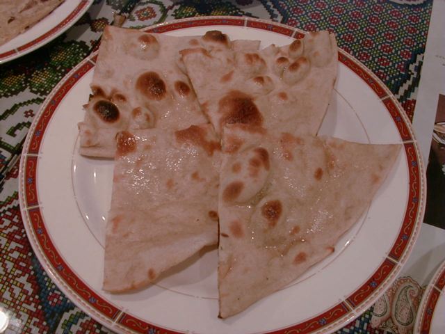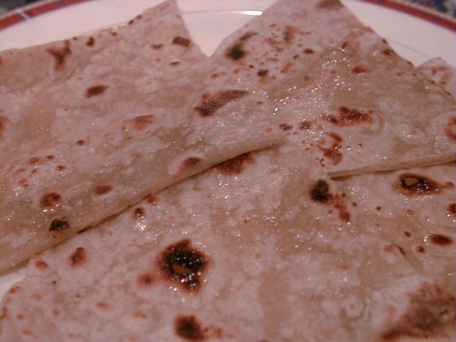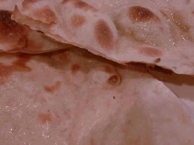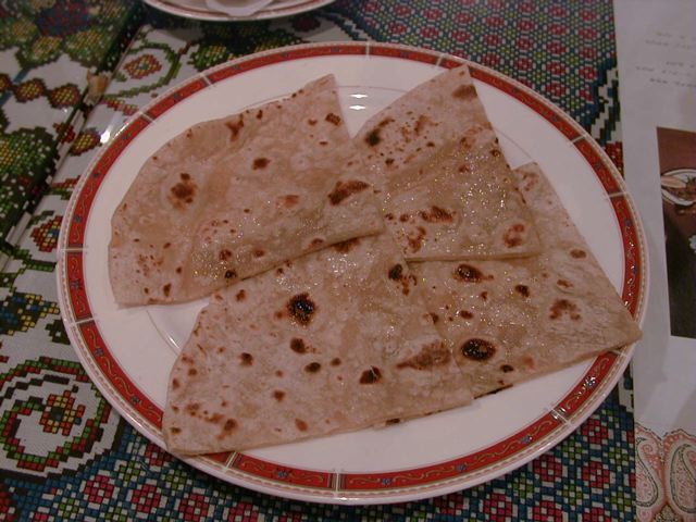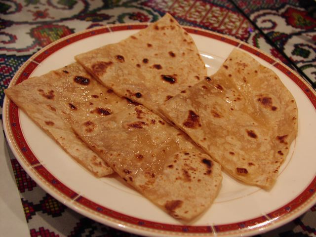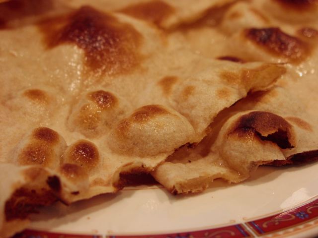 こちらの方がチャパティに比べ油っぽいのですが、全粒は油と一緒になると独特の苦み(というか「ふすま」部分のえぐみ等)が良い方に香り立って、旨みは増します。かといって「チャパティ」より旨いというつもりはなく、どちらも特徴をよく生かされて甲乙つけがたいモノであった為、最後まで交互に堪能しながらいただきました。