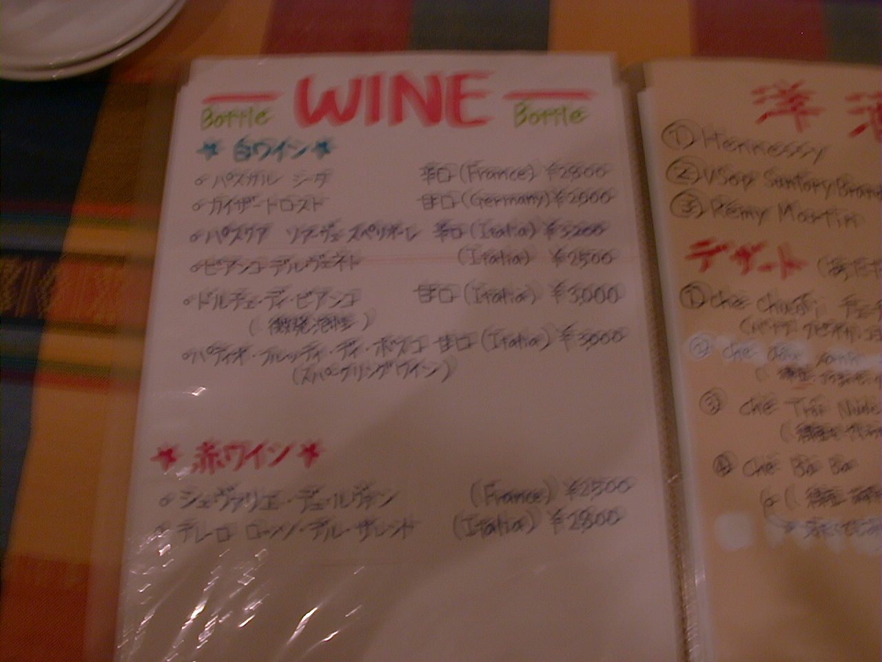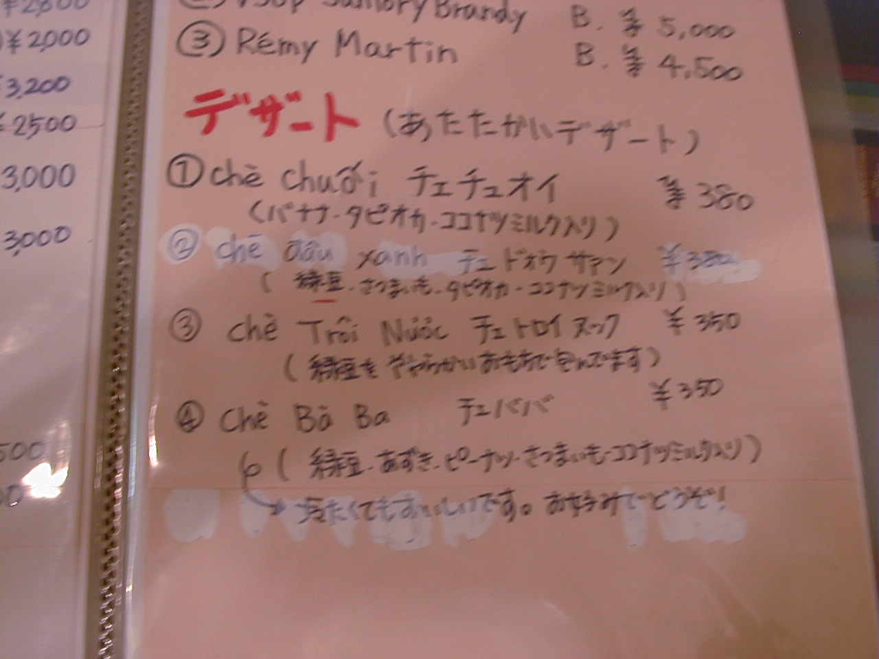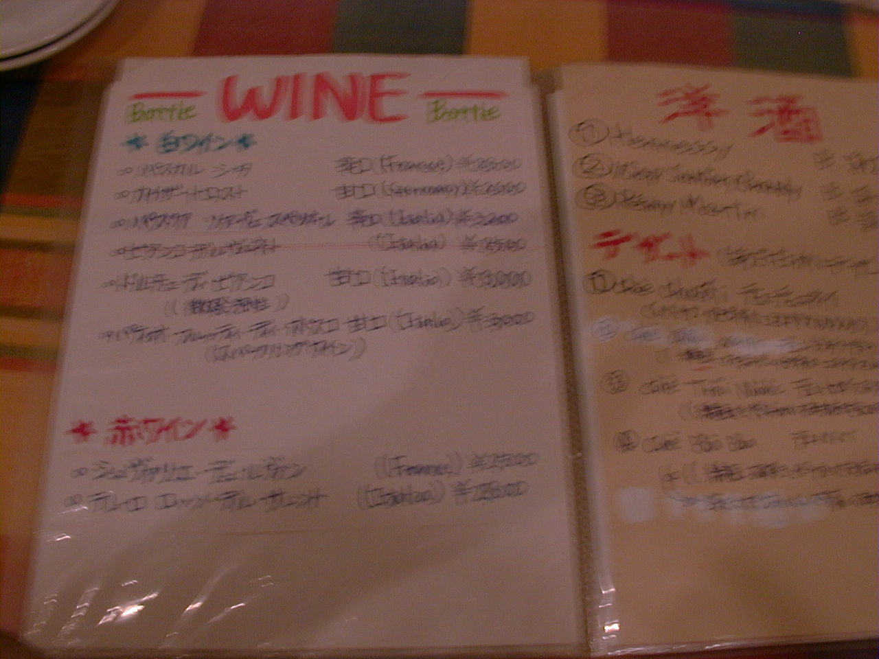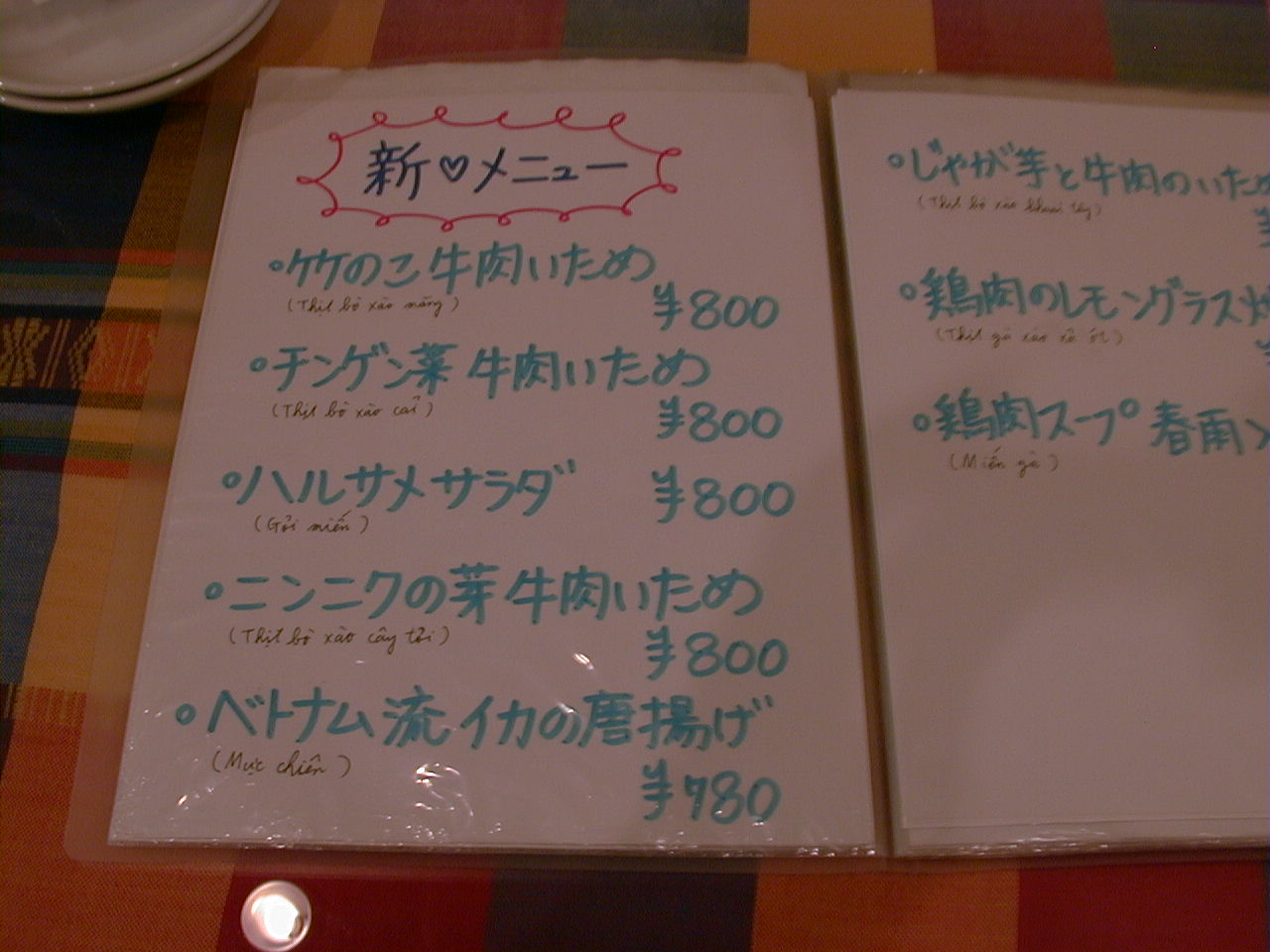 2001/8/11: くぅえといのメニュー
