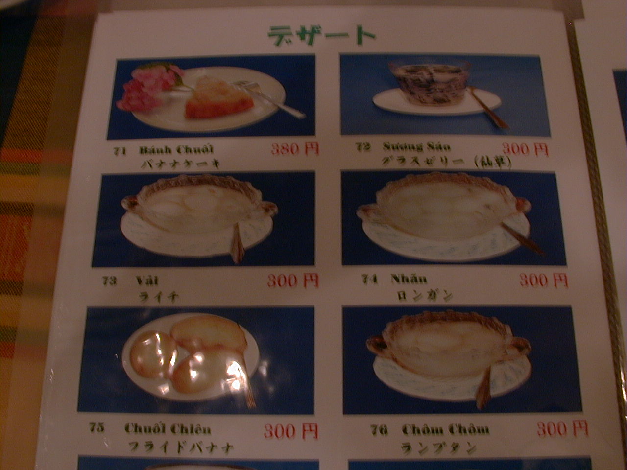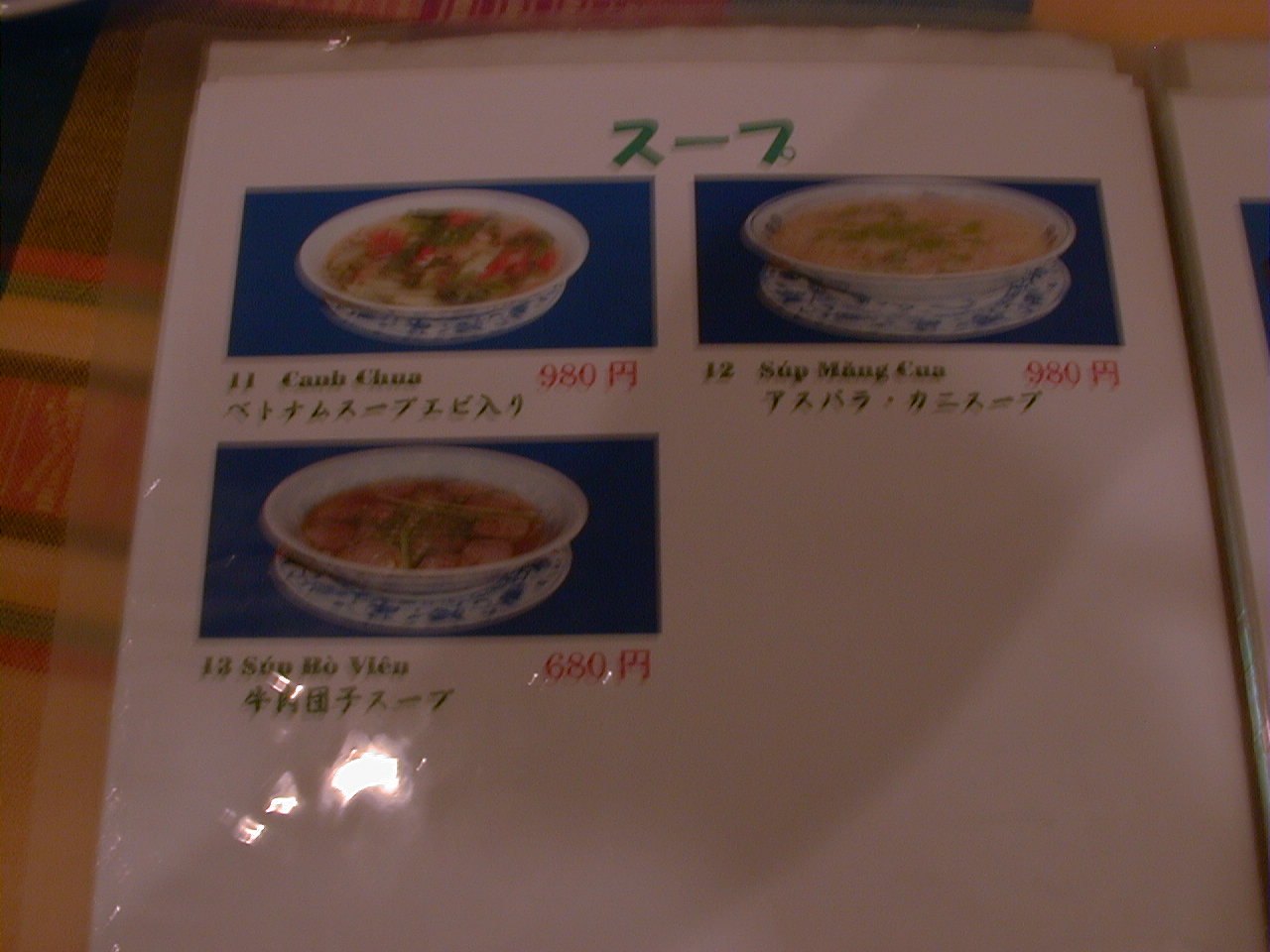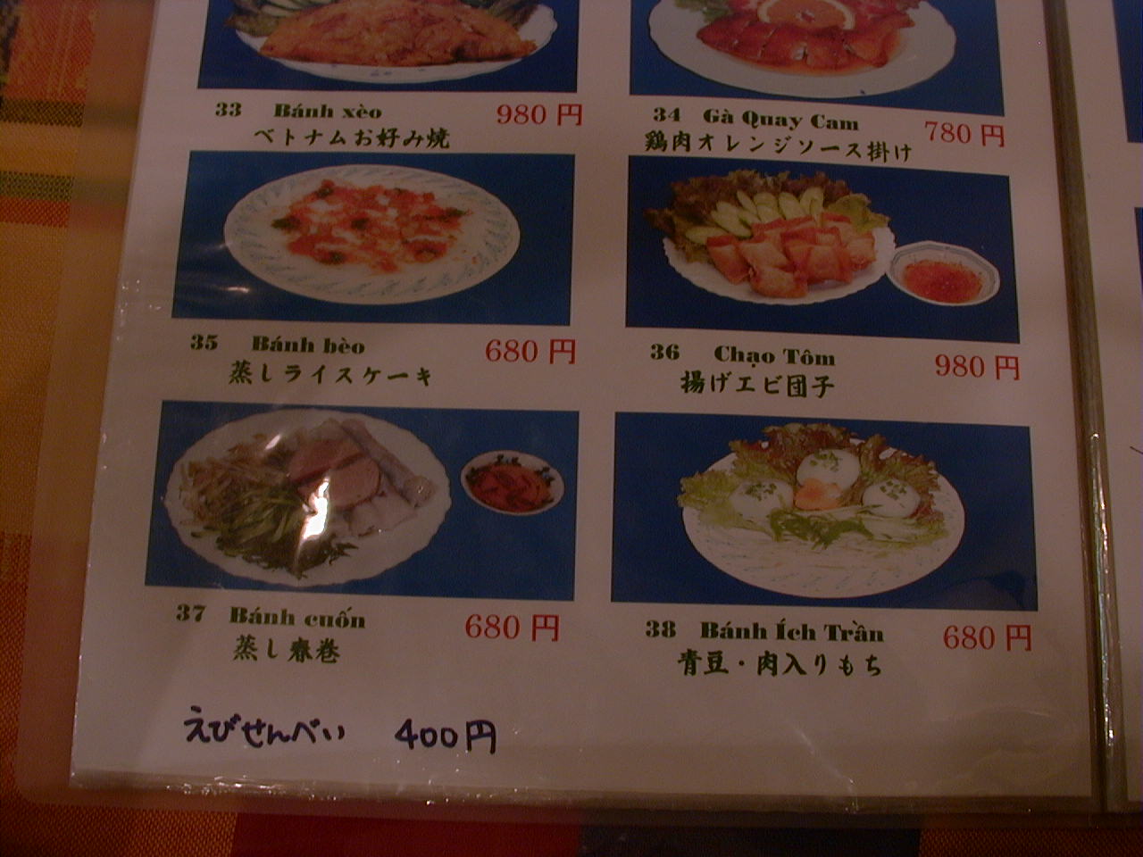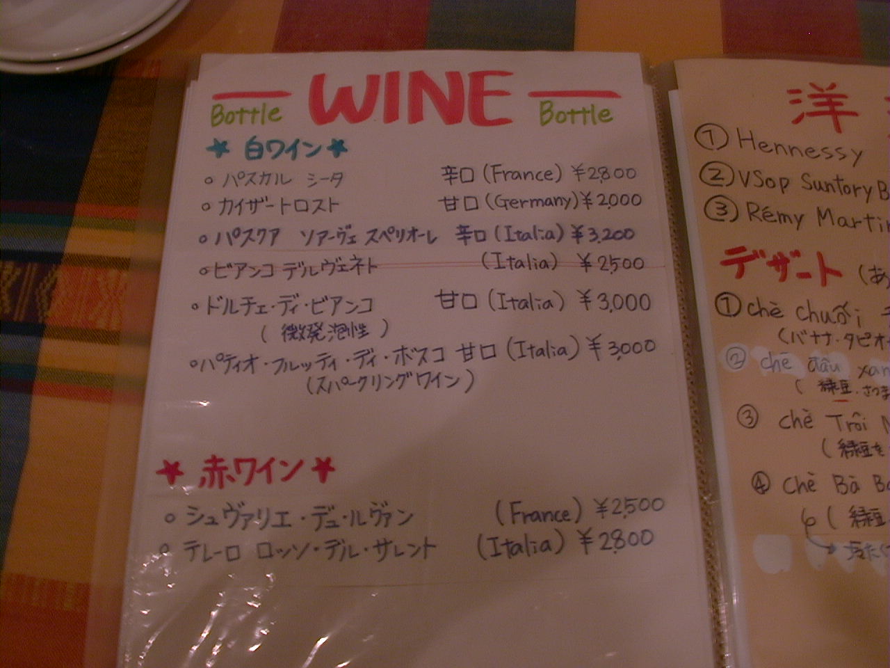 2001/8/11: くぅえといのメニュー