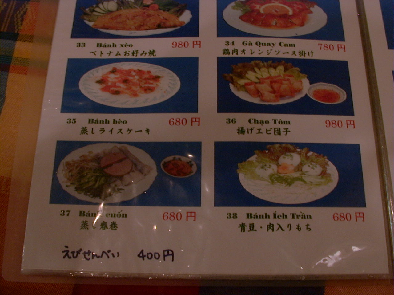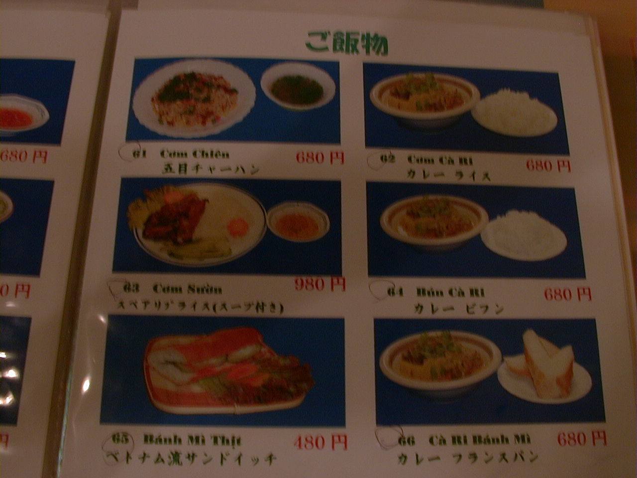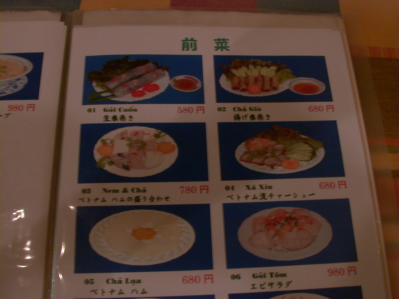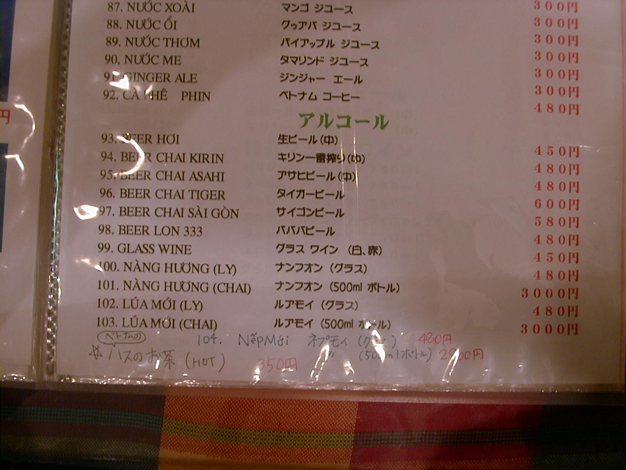2001/8/11: くぅえといのメニュー