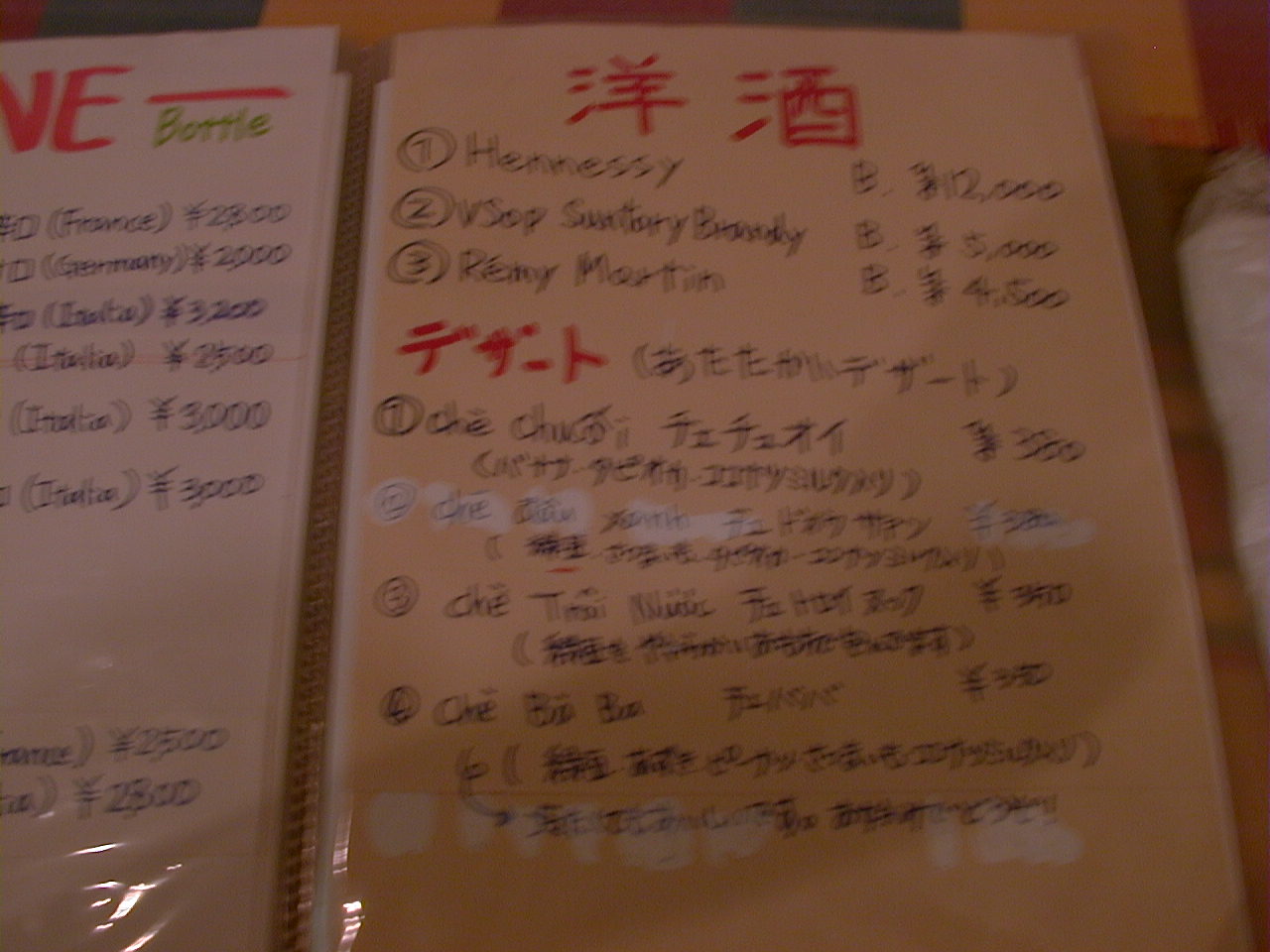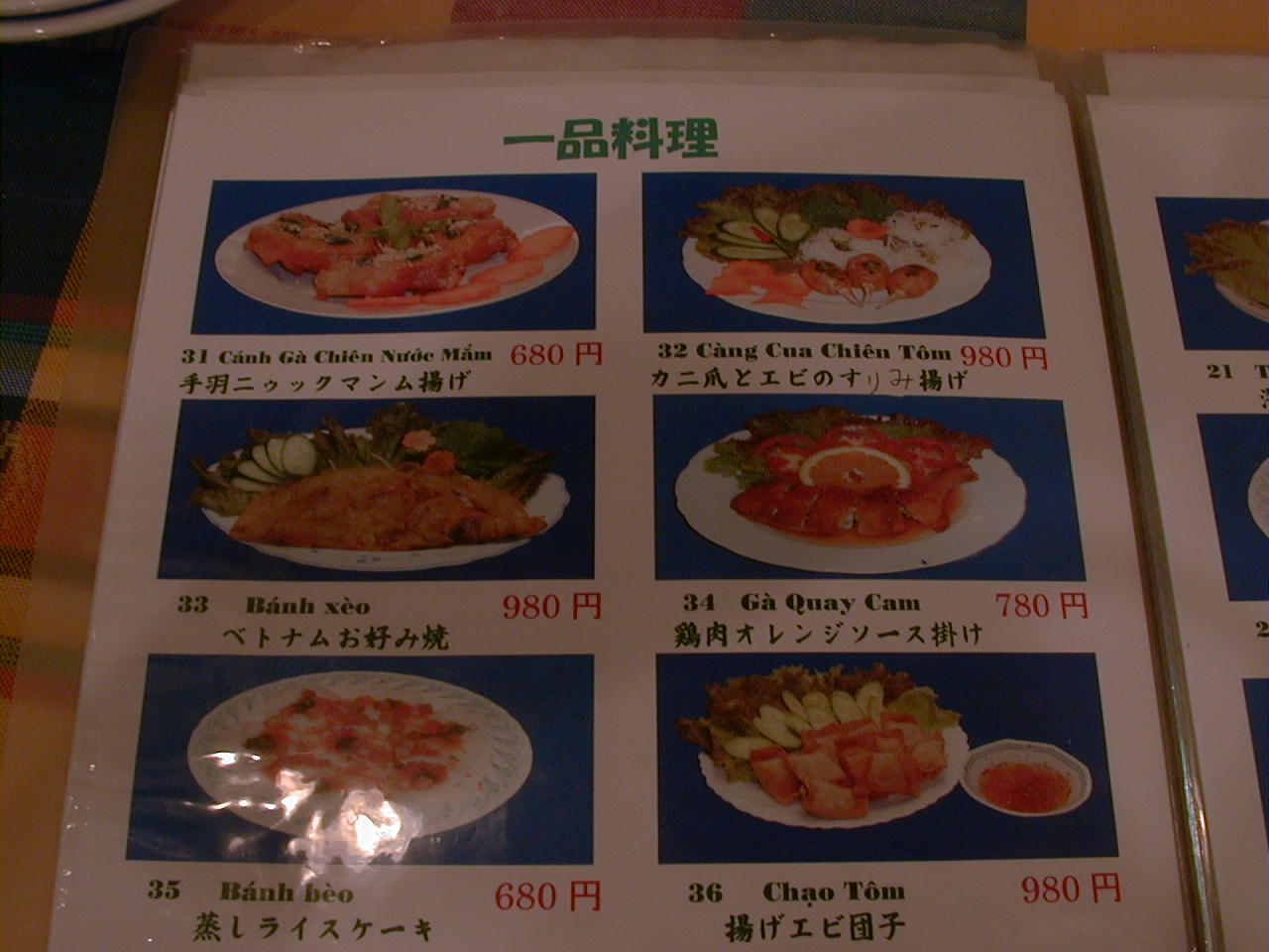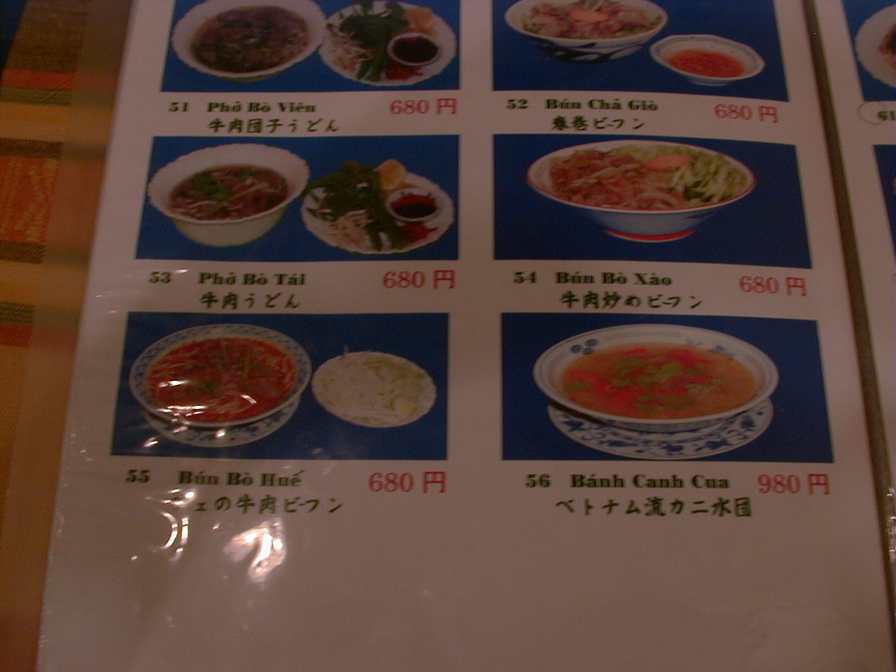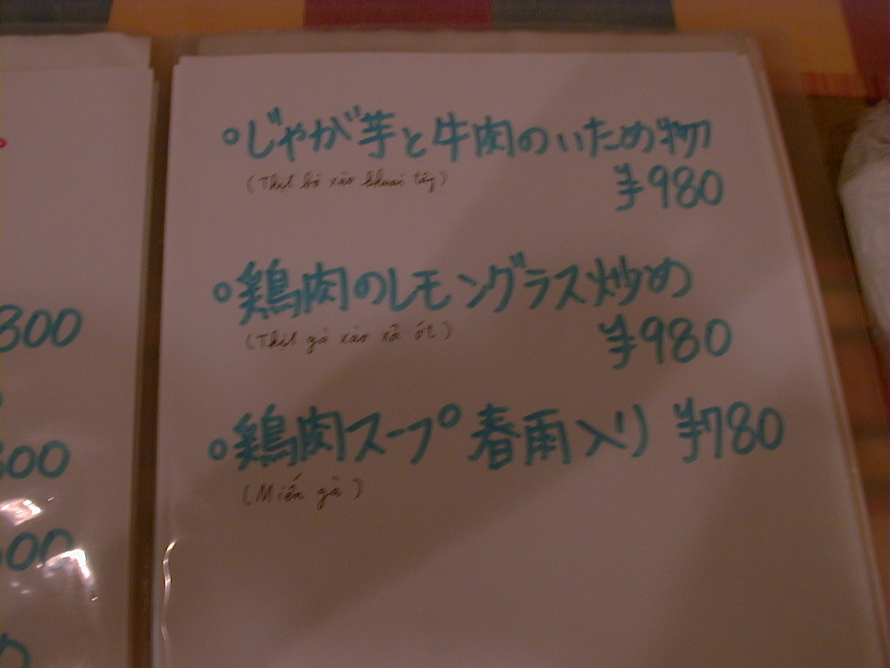 2001/8/11: くぅえといのメニュー