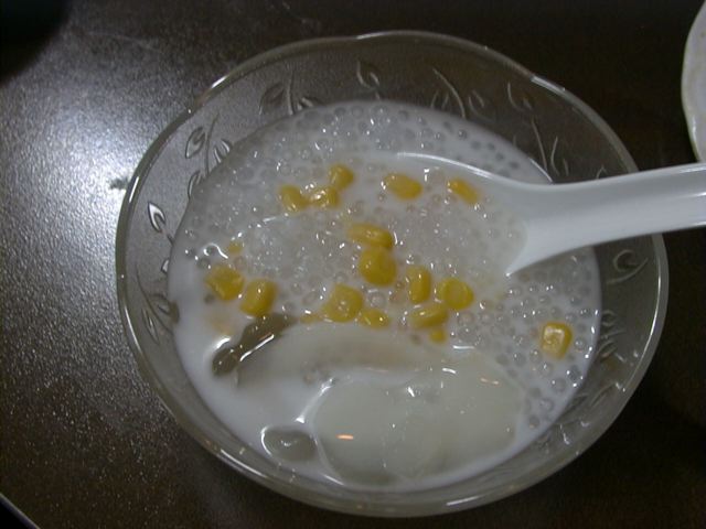 - タピオカとココナツミルクとコーン。甘すぎずコーンの味がひきたっててよかった。(ま)