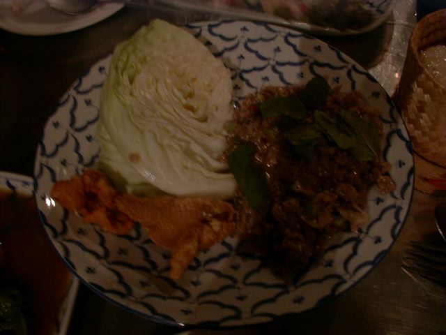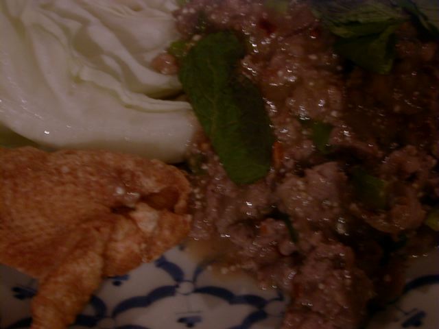 - イサーンスタイル牛挽き肉と煎りもち米の芥し和え/1000円