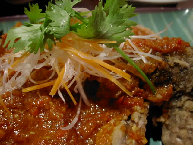 - 魚が少し土臭い気がしたけど、ソースがピリっとした辛みがあって、臭みが気にならない感じ。(ゆ)