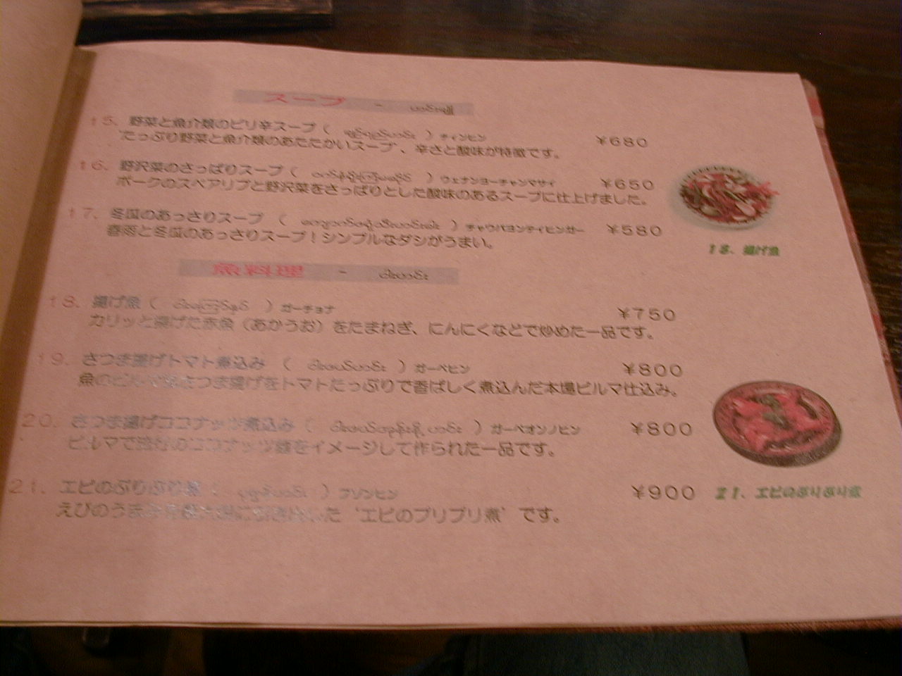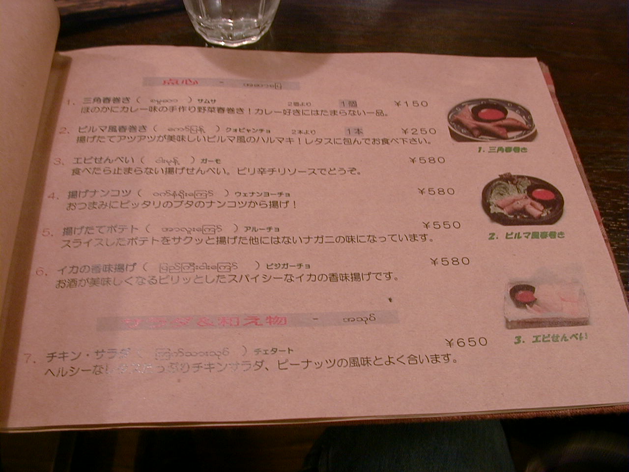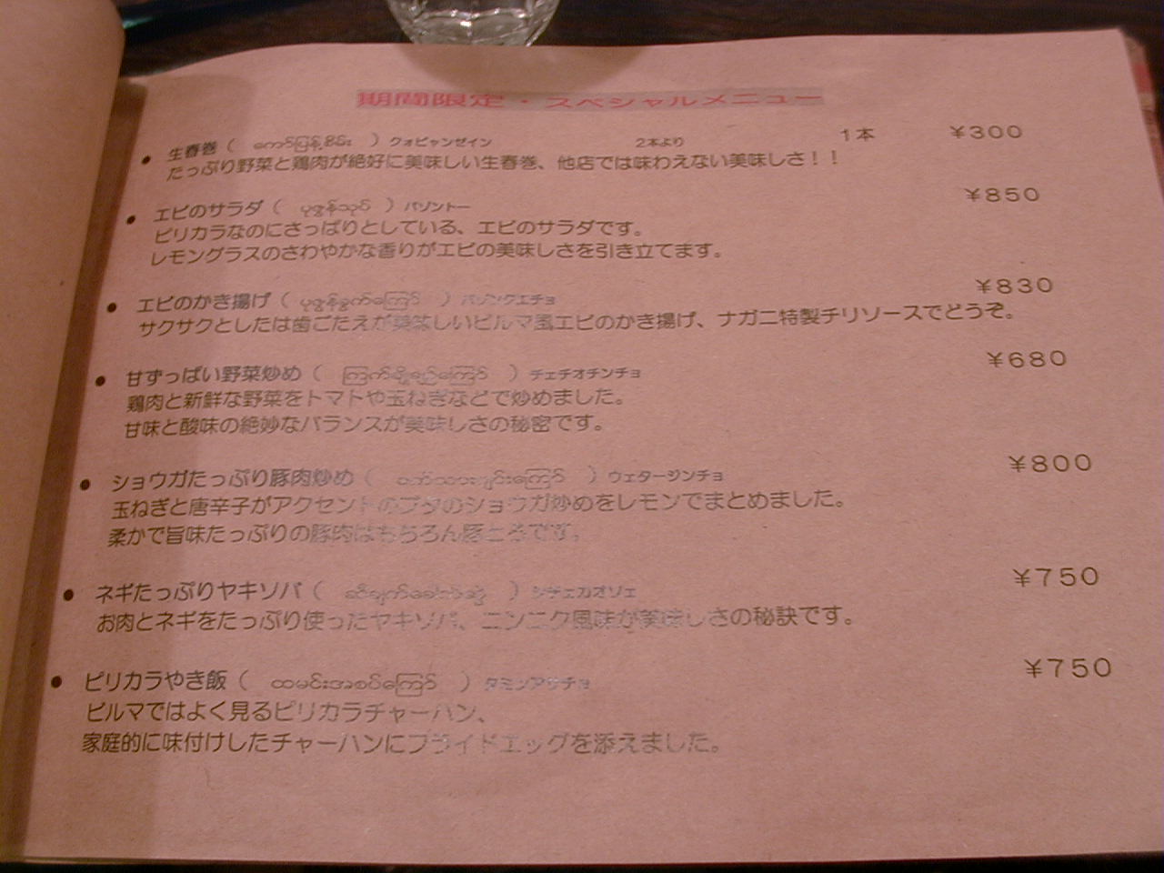 2001/10/6: ナガニのメニュー