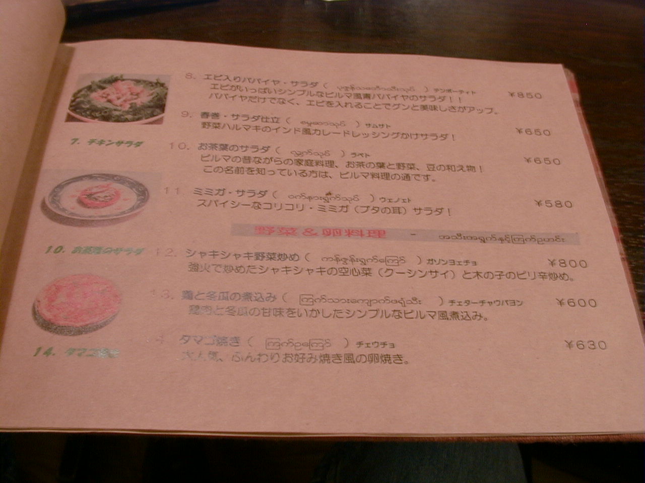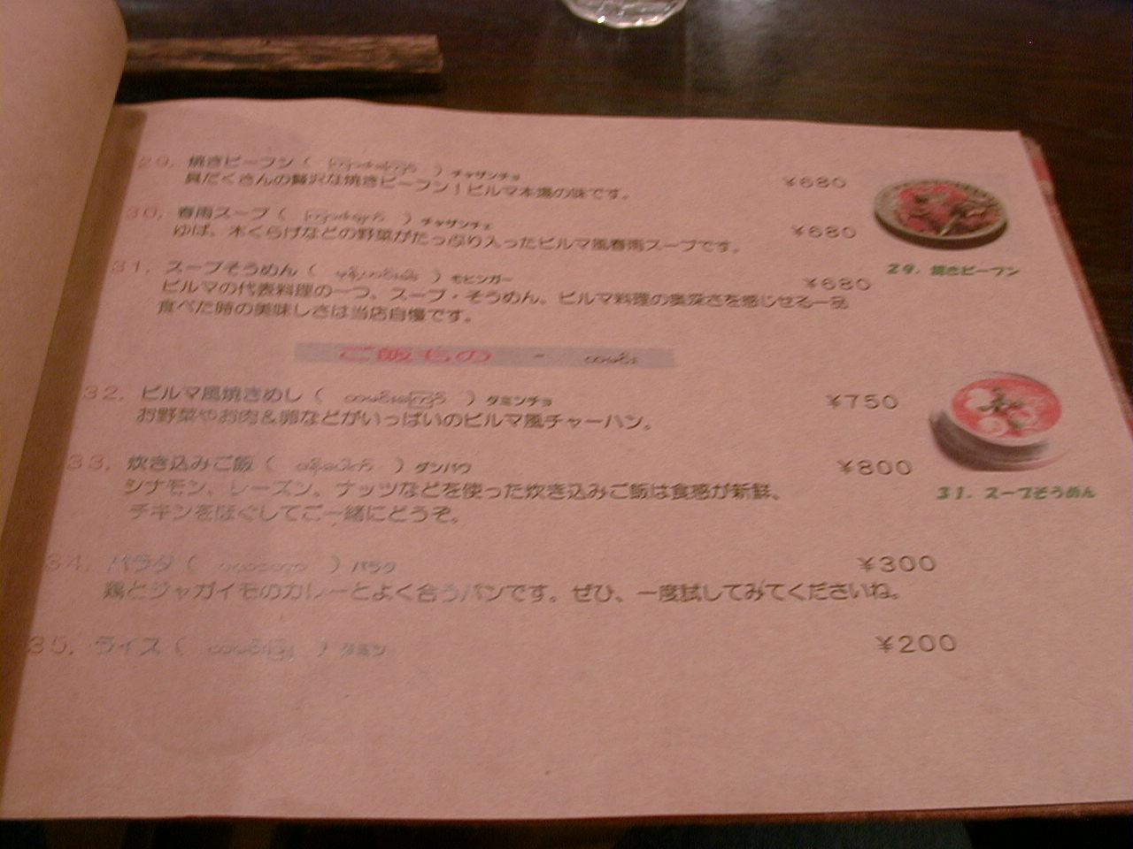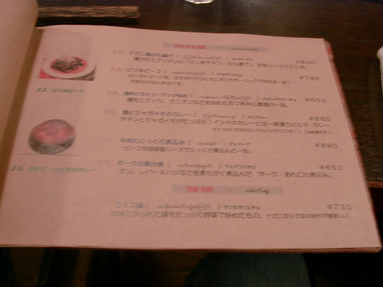 2001/10/6: ナガニのメニュー