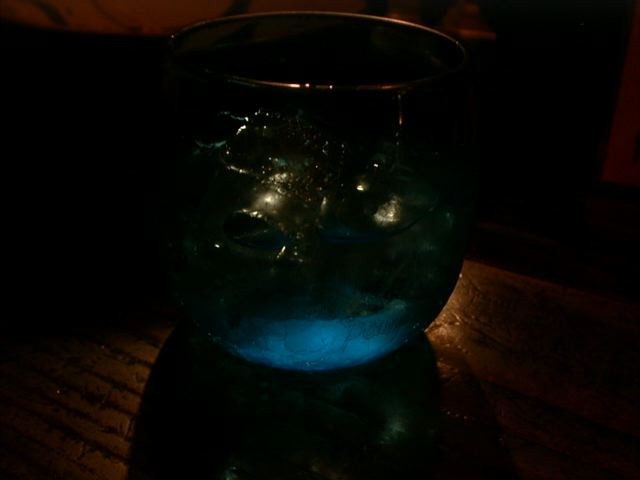 - 沖縄には離島を含めて、こんな小さな島に50近くの醸造元があるそうです。これは、伊平屋島にある酒造所のものです。7年くらいじゃ泡盛はまだまだあっさりしてます。拍子抜けするくらいに。グラスが沖縄の海を思わせるラグーンブルーで気が利いてるな、と思いました。(よ)