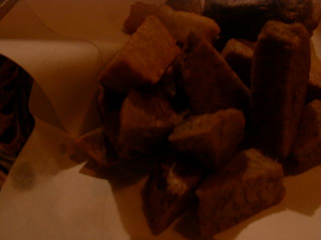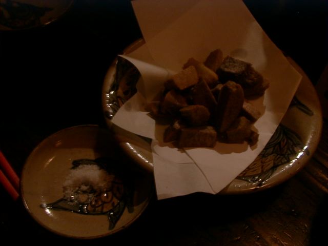 - これはあっさりすぎて、なんか悲しくなる感じ。こってりが続く中で弱すぎる!オーダーのタイミングを間違えると余計、魅力なく感じました。ふつう「ドゥル天」と言えば、いろいろこねてコロッケみたいにして揚げてあるのでもっとボリュームがあります。(よ)