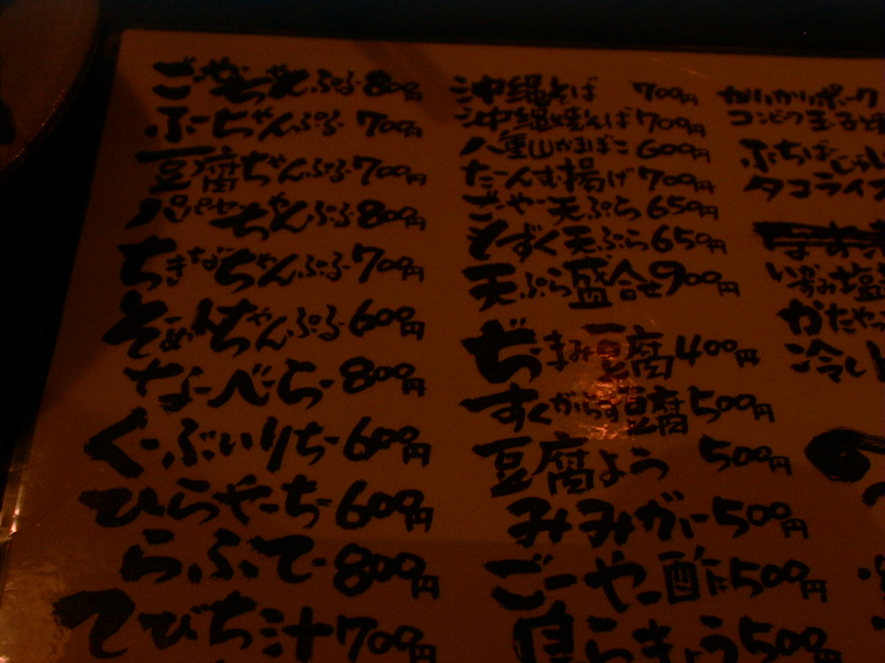 2001/10/13: ちゃんぷるーのメニュー