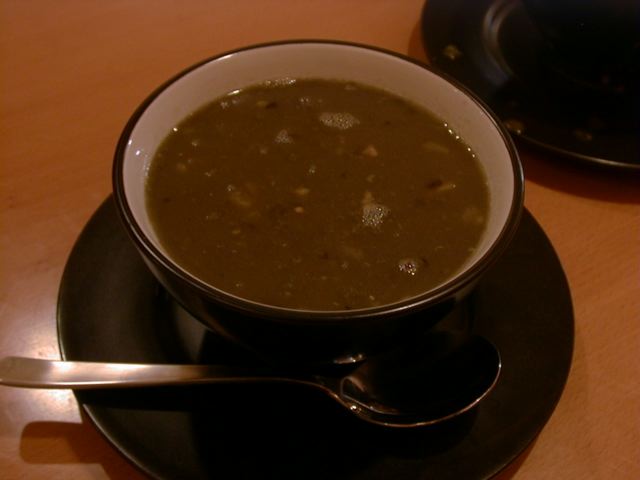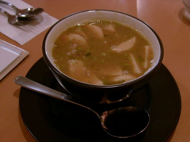 - 現時点では夜のメニューには記載されてませんが、私が大の豆好きってのを覚えてくだすったようで、予約を入れた際に用意してもらっていたようです。しかも黒い豆の方の方で。器が和食器風ってのもありますが、パッと見た目お汁粉に見えたので、心臓がバクバクしました(笑)。それにしても、シャバシャバタイプの黒豆のダルはなかなか見かけないので、すっごくうれしかったです。ジンジャーが効いた滋みあるスープです。(az)