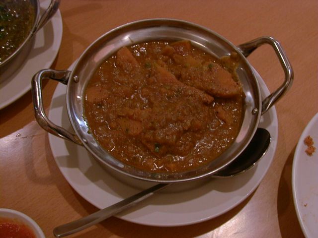 - 深さのある可愛いどんぶりで出てきたので、ちょっとびっくりしました。インド料理やネパール料理のお店では初めての体験です。今回は皆で食べ分けるからどんぶり入りは冷めにくくって良いのですが、一人で来たときには是非平皿でいただきたいと思うので、一緒に平皿出してもらうか、はじめから平皿で用意してもらうようお願いしてみます。(ちなみに今回は、全員に個人の受け皿として平皿が用意されていたので、個々では混ぜ合わせること可能でした。)(az)