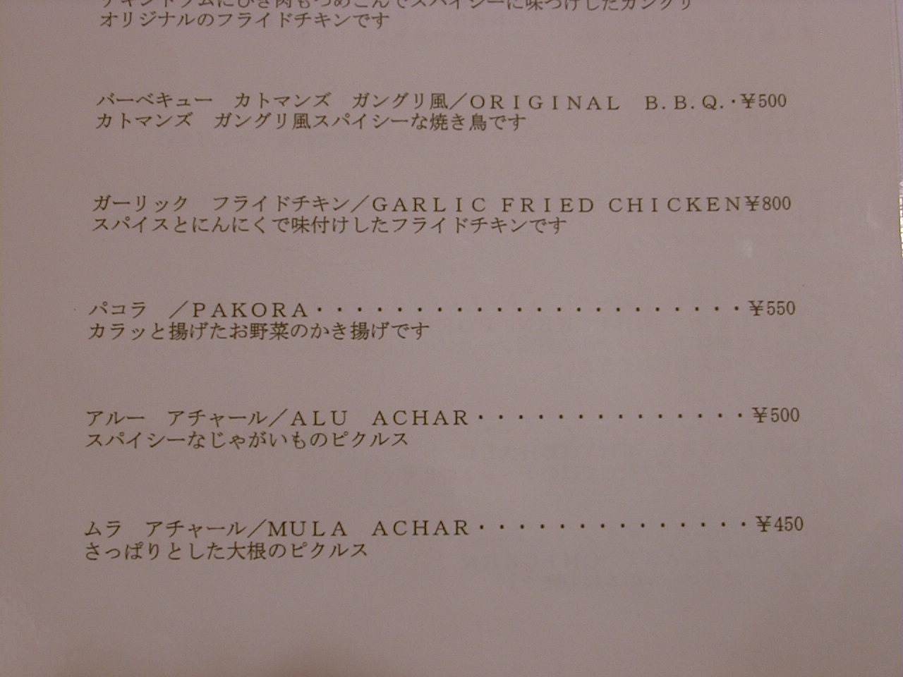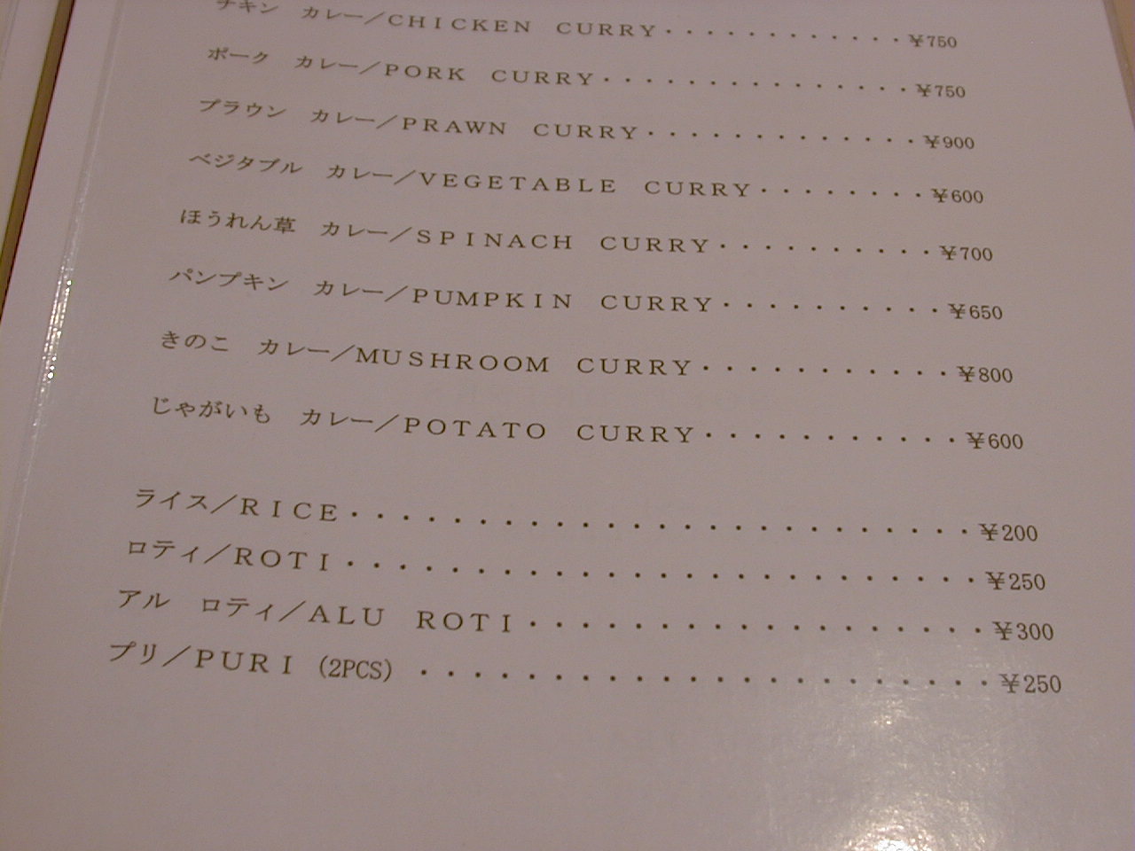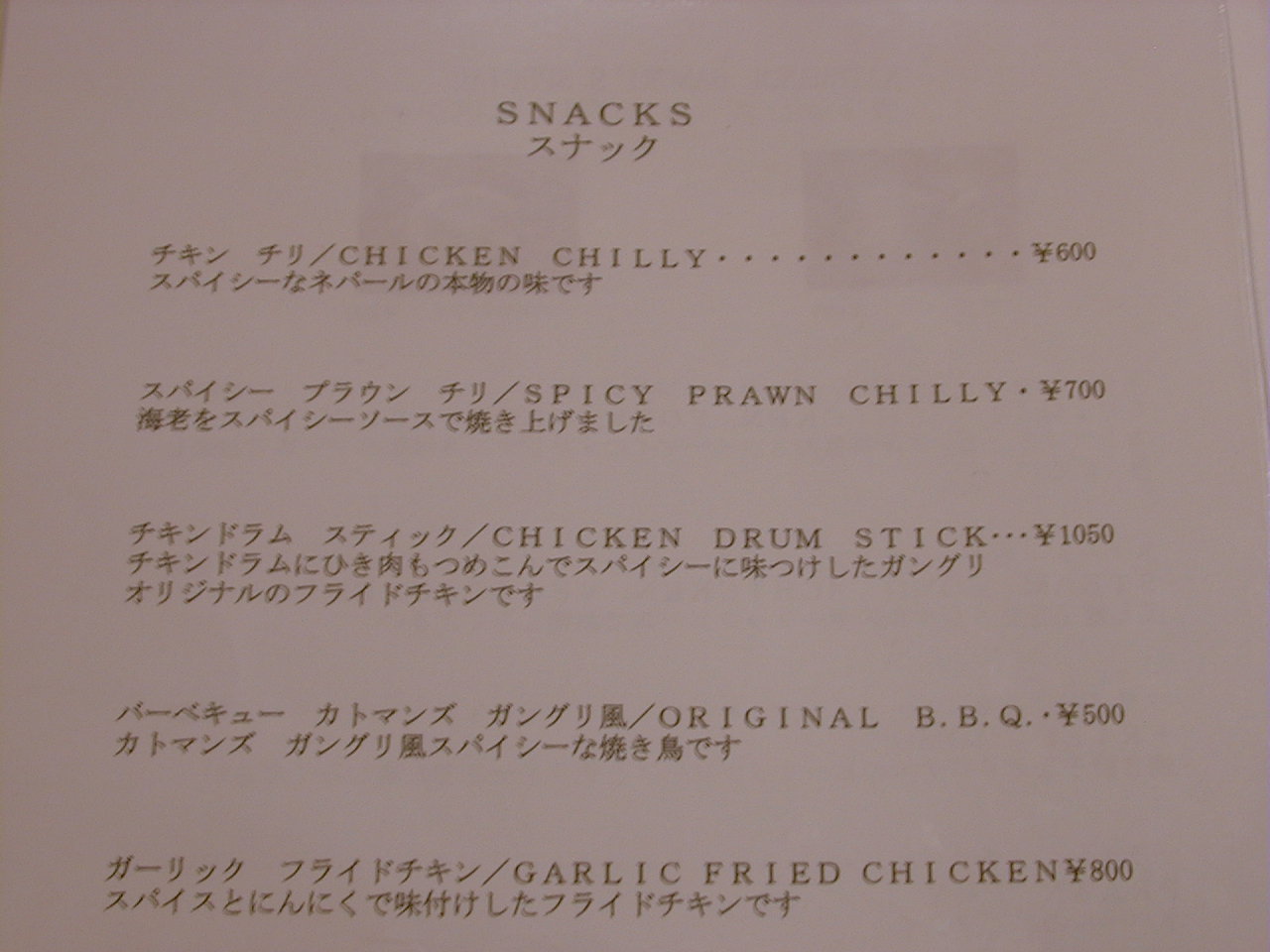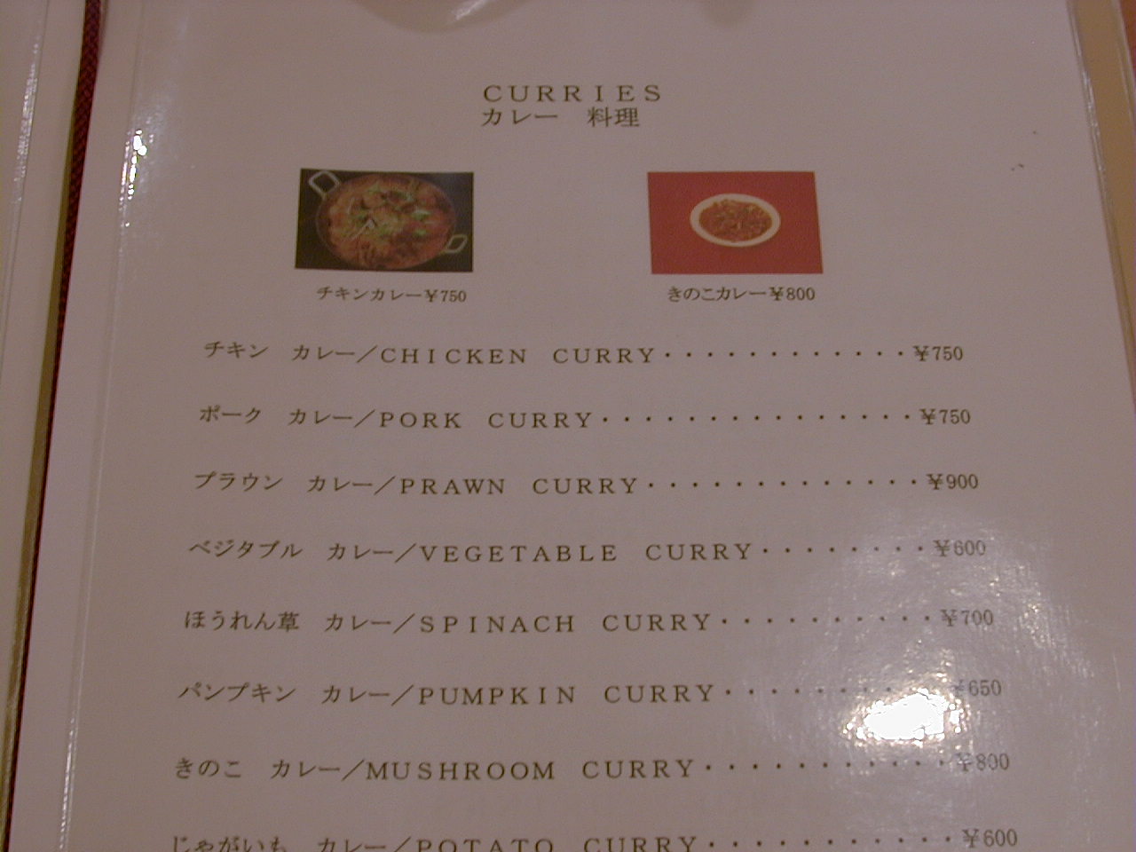 2001/10/27: ?のメニュー