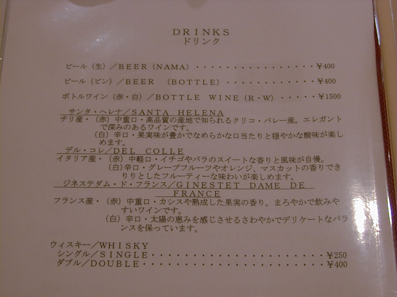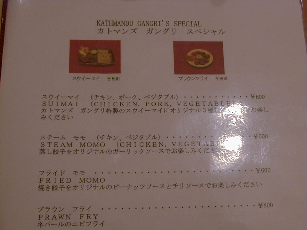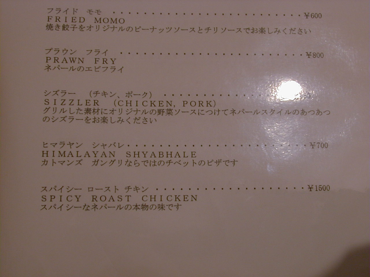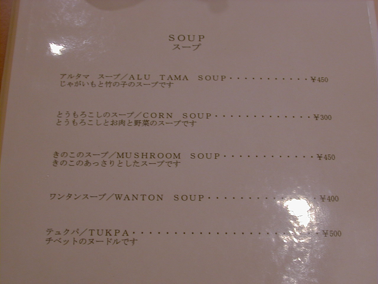 2001/10/27: ?のメニュー