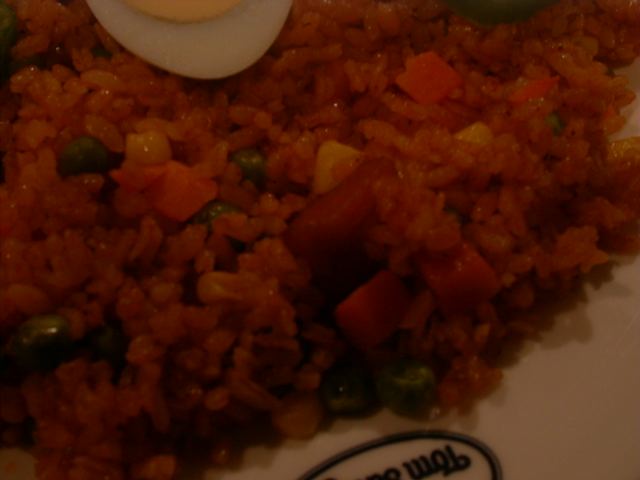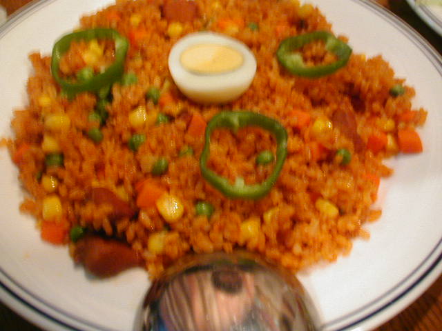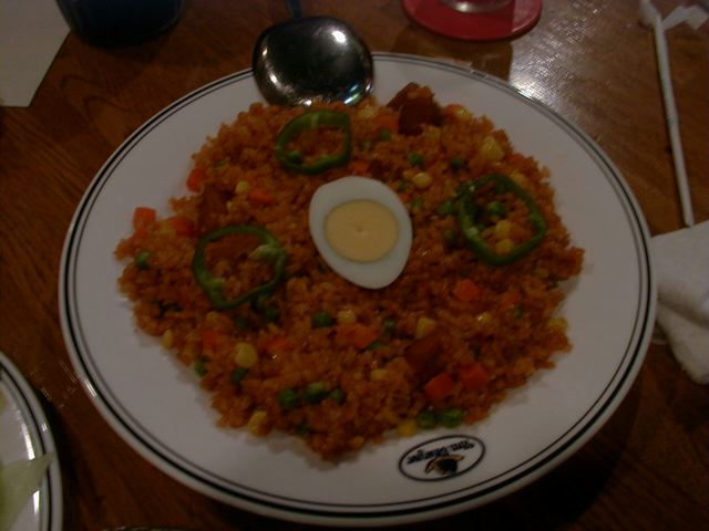 - メニュー写真に惹かれ注文したのだけど、野菜はミックスベジタブルだし、塩胡椒にブイヨンっぽい味つけのごく普通のケチャップライスのようでした。